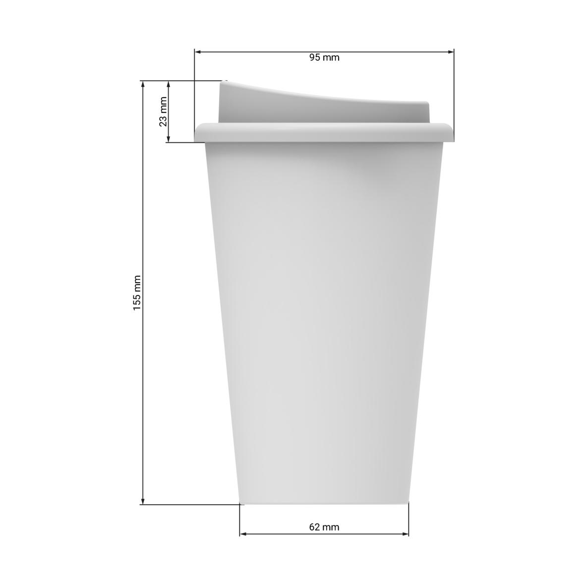Für den Kaffee unterwegs. Praktischer To-Go-Becher aus doppelwandigem Kunststoff inkl. Deckel mit Trinköffnung. Der Deckel ist verschraubbar und hält somit besonders gut auf dem Becher. Füllmenge: 0,35 Liter.