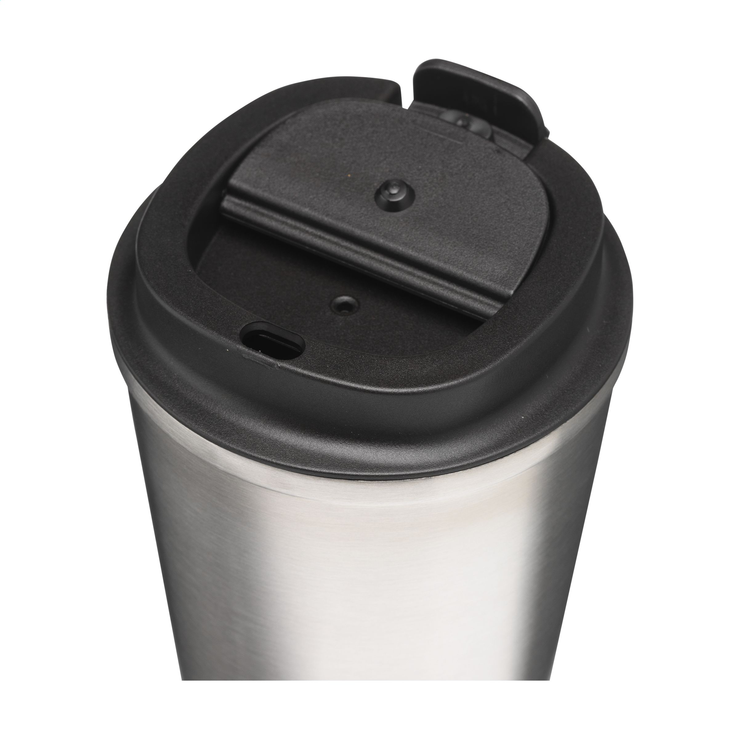 WoW! Doppelwandiger, auslaufsicherer Thermobecher aus recyceltem Edelstahl. Abgerundet mit einem matten Finish. Mit PP-Schraubdeckel, Klicköffnung und rutschfester Unterseite. Nicht spülmaschinengeeignet. RCS-zertifiziert. Recyceltes Material insgesamt: 77%. Fassungsvermögen 450 ml, gemessen bis zum Rand, ohne Deckel. Fassungsvermögen mit Deckel gemessen ca. 300 ml. Edelstahl kann viele Male recycelt werden – die Qualität des Materials bleibt dabei weitgehend erhalten. Durch die Verwendung von recyceltem Edelstahl kommt eine geringere Menge an neuen Rohstoffen zum Einsatz. Das bedeutet weniger Energieverbrauch und weniger Wasserverbrauch. Wird einzeln in einem Kraftkarton geliefert.