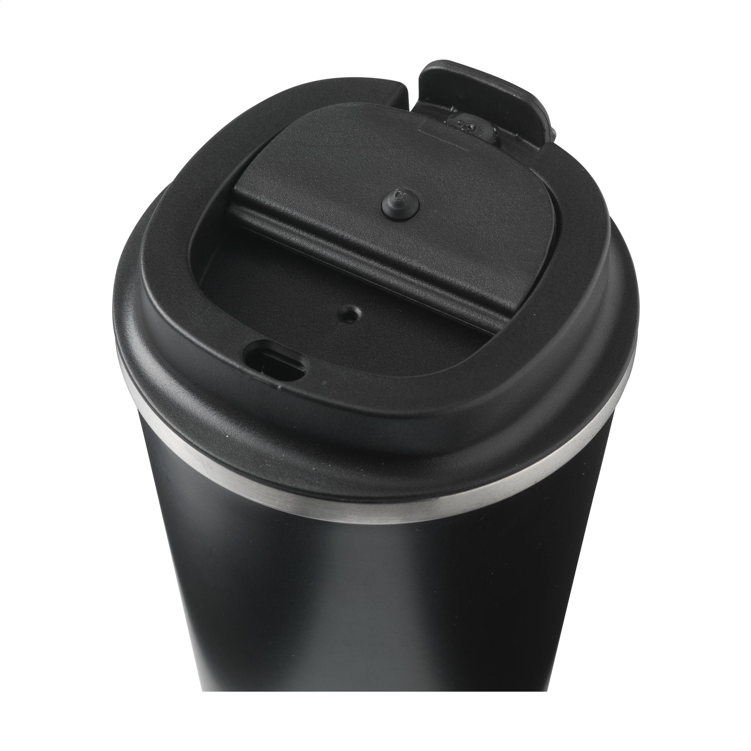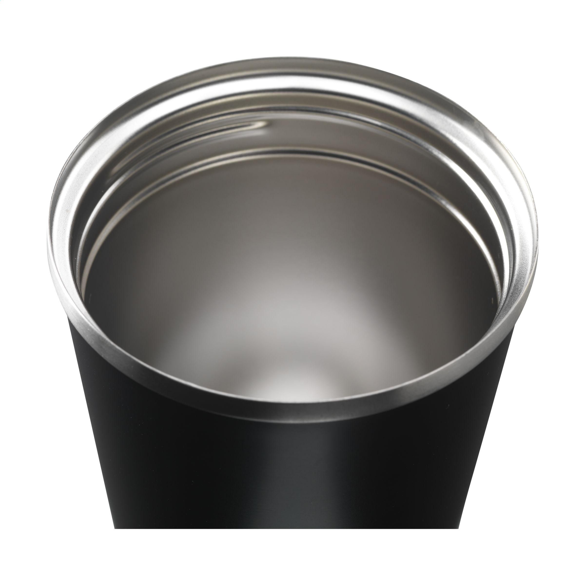 Doppelwandiger, auslaufsicherer Thermobecher aus recyceltem Edelstahl. Abgerundet mit einem matten Finish. Mit PP-Schraubdeckel, Klicköffnung und rutschfester Unterseite. Nicht spülmaschinengeeignet. RCS-zertifiziert. Recyceltes Material insgesamt: 77%. Fassungsvermögen 450 ml, gemessen bis zum Rand, ohne Deckel. Fassungsvermögen mit Deckel gemessen ca. 300 ml.Edelstahl kann viele Male recycelt werden – die Qualität des Materials bleibt dabei weitgehend erhalten. Durch die Verwendung von recyceltem Edelstahl kommt eine geringere Menge an neuen Rohstoffen zum Einsatz. Das bedeutet weniger Energieverbrauch und weniger Wasserverbrauch.