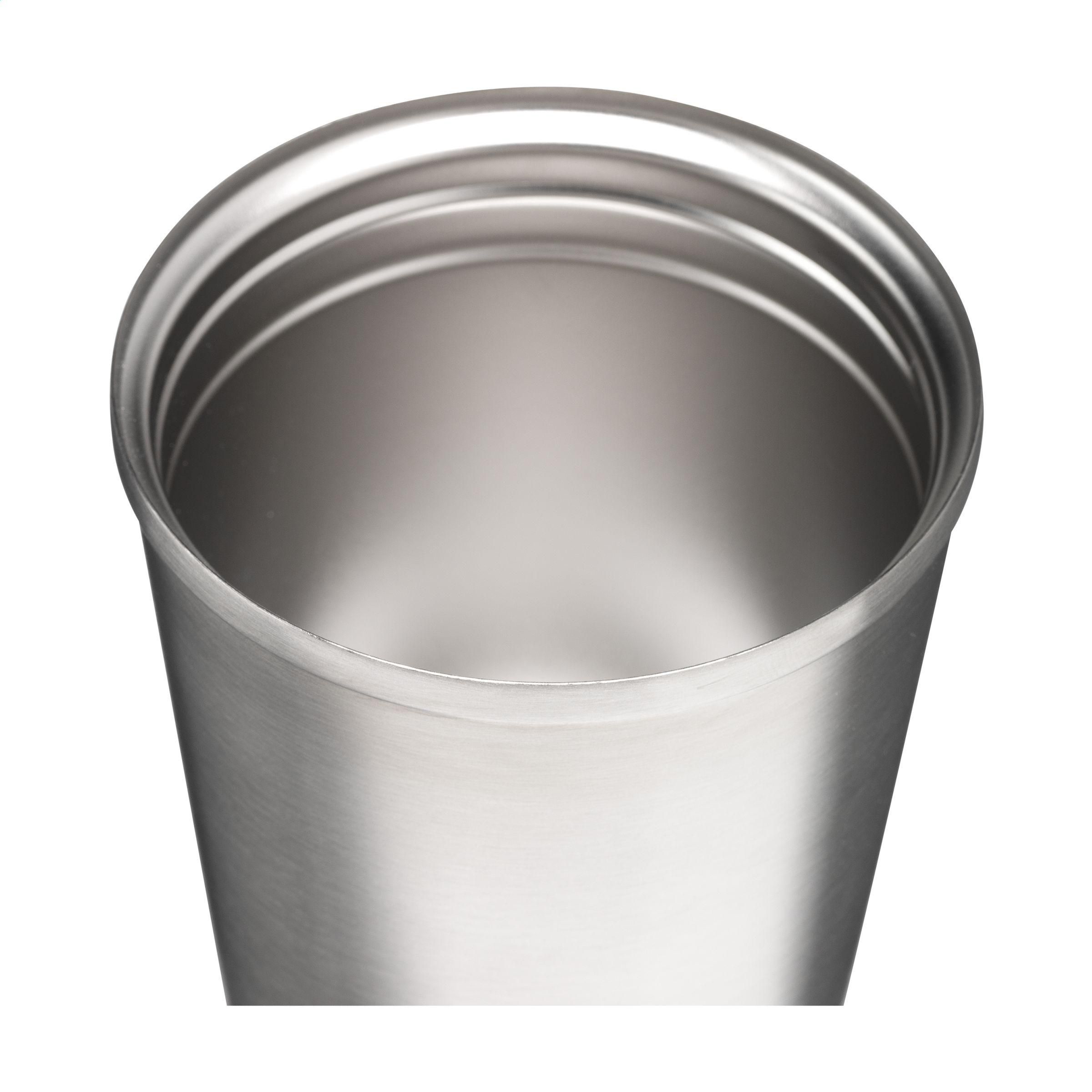 Doppelwandiger, auslaufsicherer Thermobecher aus recyceltem Edelstahl. Abgerundet mit einem matten Finish. Mit PP-Schraubdeckel, Klicköffnung und rutschfester Unterseite. Nicht spülmaschinengeeignet. RCS-zertifiziert. Recyceltes Material insgesamt: 77%. Fassungsvermögen 450 ml, gemessen bis zum Rand, ohne Deckel. Fassungsvermögen mit Deckel gemessen ca. 300 ml.Edelstahl kann viele Male recycelt werden – die Qualität des Materials bleibt dabei weitgehend erhalten. Durch die Verwendung von recyceltem Edelstahl kommt eine geringere Menge an neuen Rohstoffen zum Einsatz. Das bedeutet weniger Energieverbrauch und weniger Wasserverbrauch.