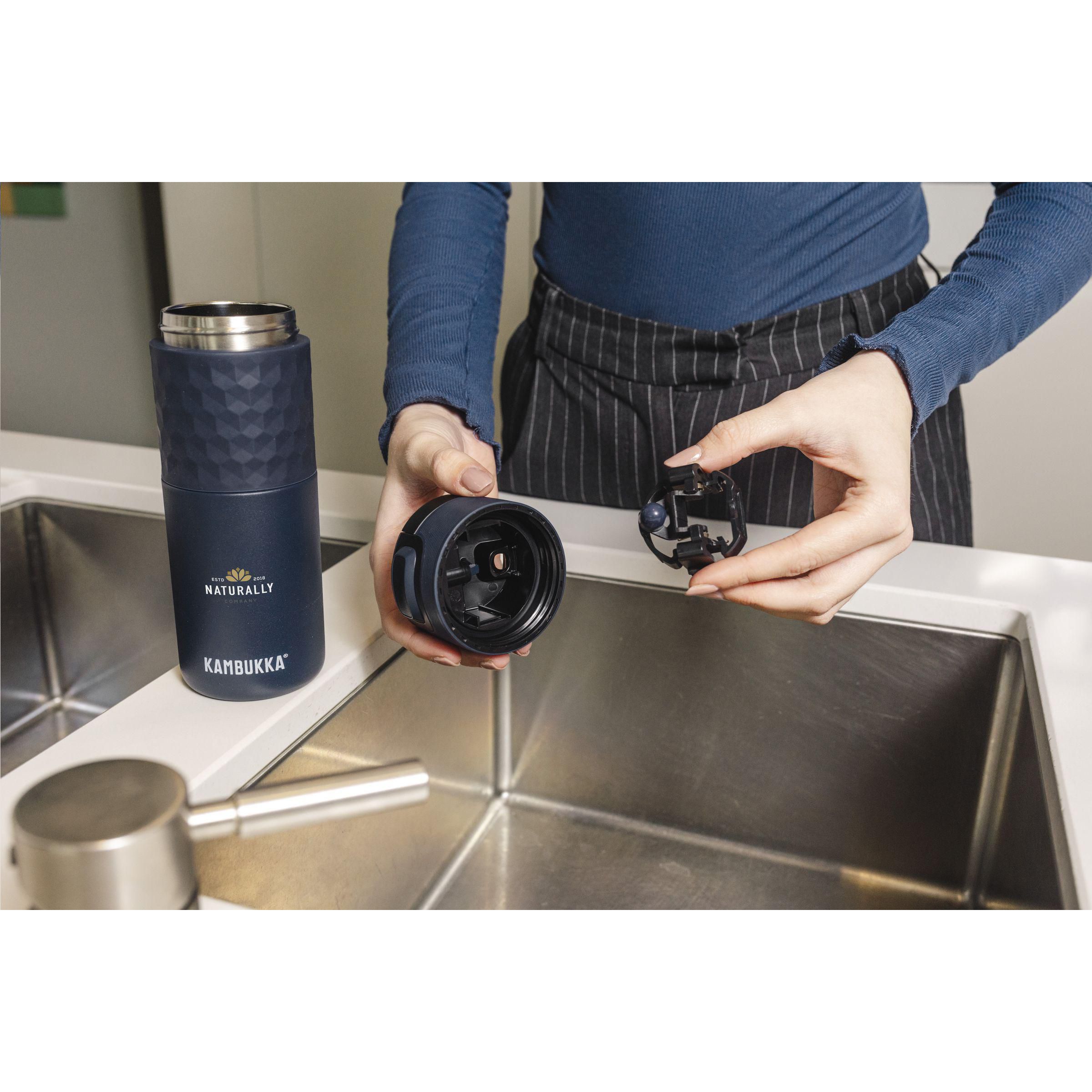 Der ideale Thermobecher der Marke Kambukka® für unterwegs • hervorragende Qualität • attraktives Design • praktische Größe • vakuumisolierter 18/8-Edelstahl • hält Getränke bis zu 9 Stunden warm und bis zu 18 Stunden kalt • 3-in-1-Deckel mit 2 Trinkpositionen: kurz drücken und schnell einen Schluck trinken oder ganz öffnen, um so bequem und ohne Verschütten zu trinken • dank Snapclean® leicht zu reinigen: entfernen Sie den inneren, spülmaschinenfesten Mechanismus in einer Bewegung. • Universalverschluss: passt auch auf andere Kambukka® Trinkflaschen • der Verschluss ist spülmaschinengeeignet - den Becher mit der Hand spülen • gummierter Griff • 100% auslaufsicher • Fassungsvermögen 500 ml.LAGERBESTANDSINFORMATION: Bis zu 1.000 Stück innerhalb von 6 Tagen verfügbar. Ausnahmen vorbehalten. Kambukka ist B-Corp-zertifiziert; die Kollektion wird nach den höchstmöglichen ökologischen und sozialen B-Corp-Standards hergestellt.