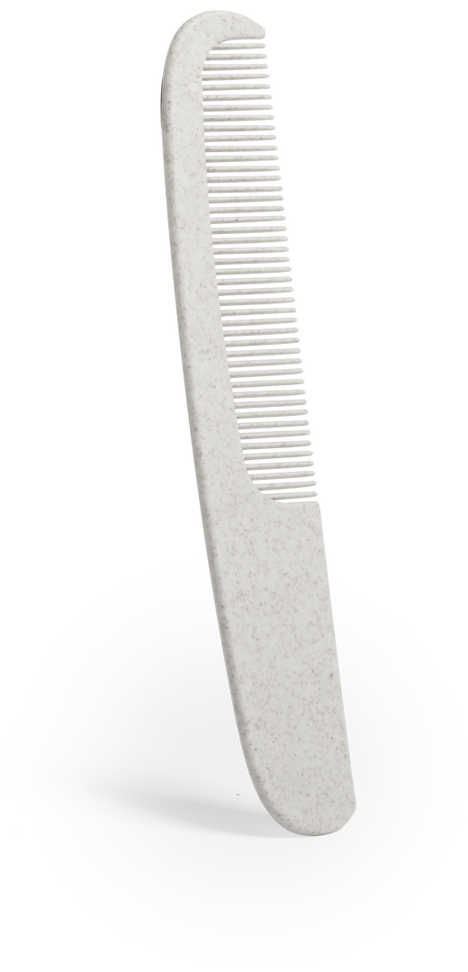 Weizenstrohkamm aus unserer Naturlinie, um die Verwendung natürlicher Rohstoffe zu fördern und Schadstoffemissionen zu reduzieren. Breite Druckfläche auf dem Griff.