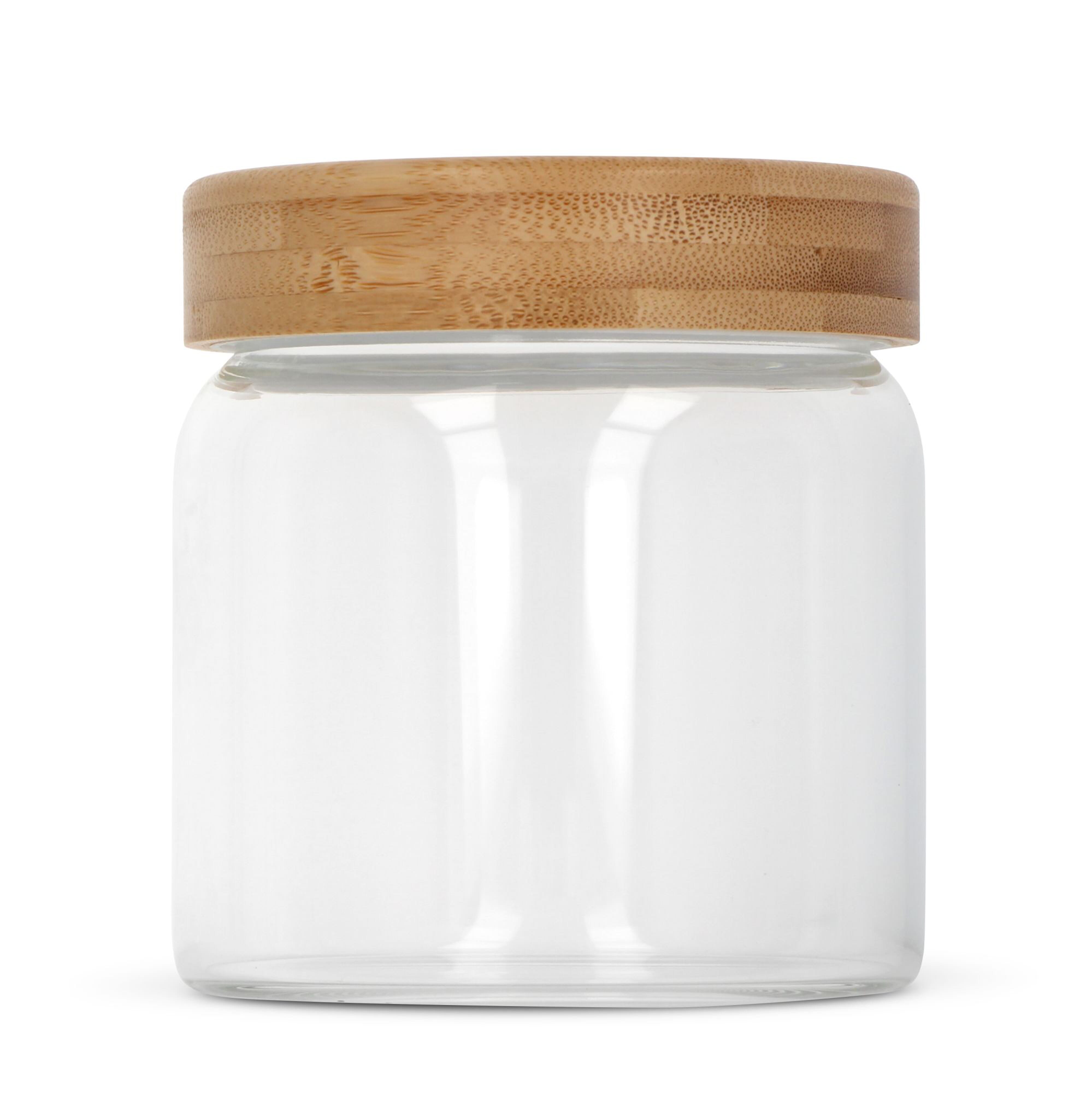 Wir präsentieren unseren eleganten 600-ml-Glaskanister mit einem stilvollen Bambusdeckel. Bewahren Sie Ihre wichtigsten Dinge mit Klasse auf. Perfekt für die Organisation von Küche und Haushalt.