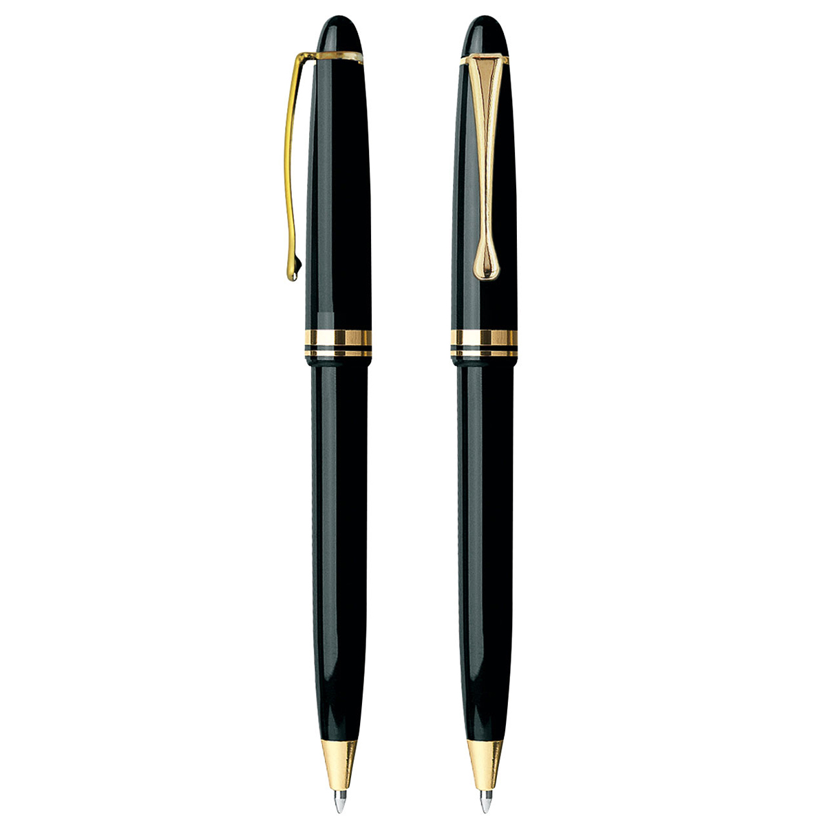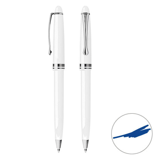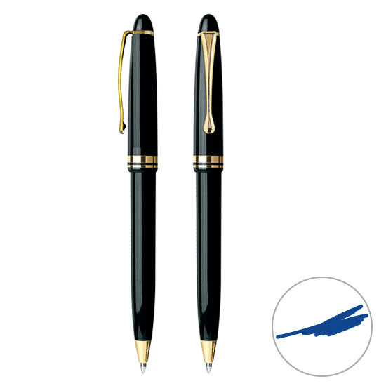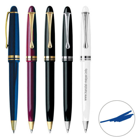 Kappendruck-Kugelschreiber "Kappa" Clip, Spitze und Dekor goldfarben, Großraummine, blau schreibend