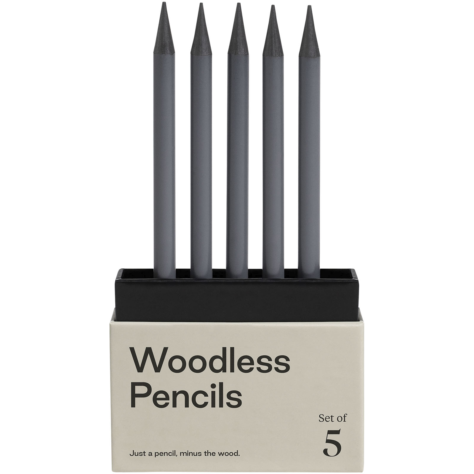 Set mit 5 Graphitstiften, das 5 Mal mehr Graphit pro Stift bietet. Der holzfreie Körper kann für scharfe Linien geschärft oder für ausdrucksstarke Striche oder subtile Schattierungen stumpf gemacht werden. Die holzfreie Konstruktion ist vielseitig und erspart die vielen Holzspäne, die normalerweise anfallen. Das solide Gewicht dieser Bleistifte liegt angenehm in der Hand, egal ob Sie schreiben, kritzeln, malen oder zeichnen.