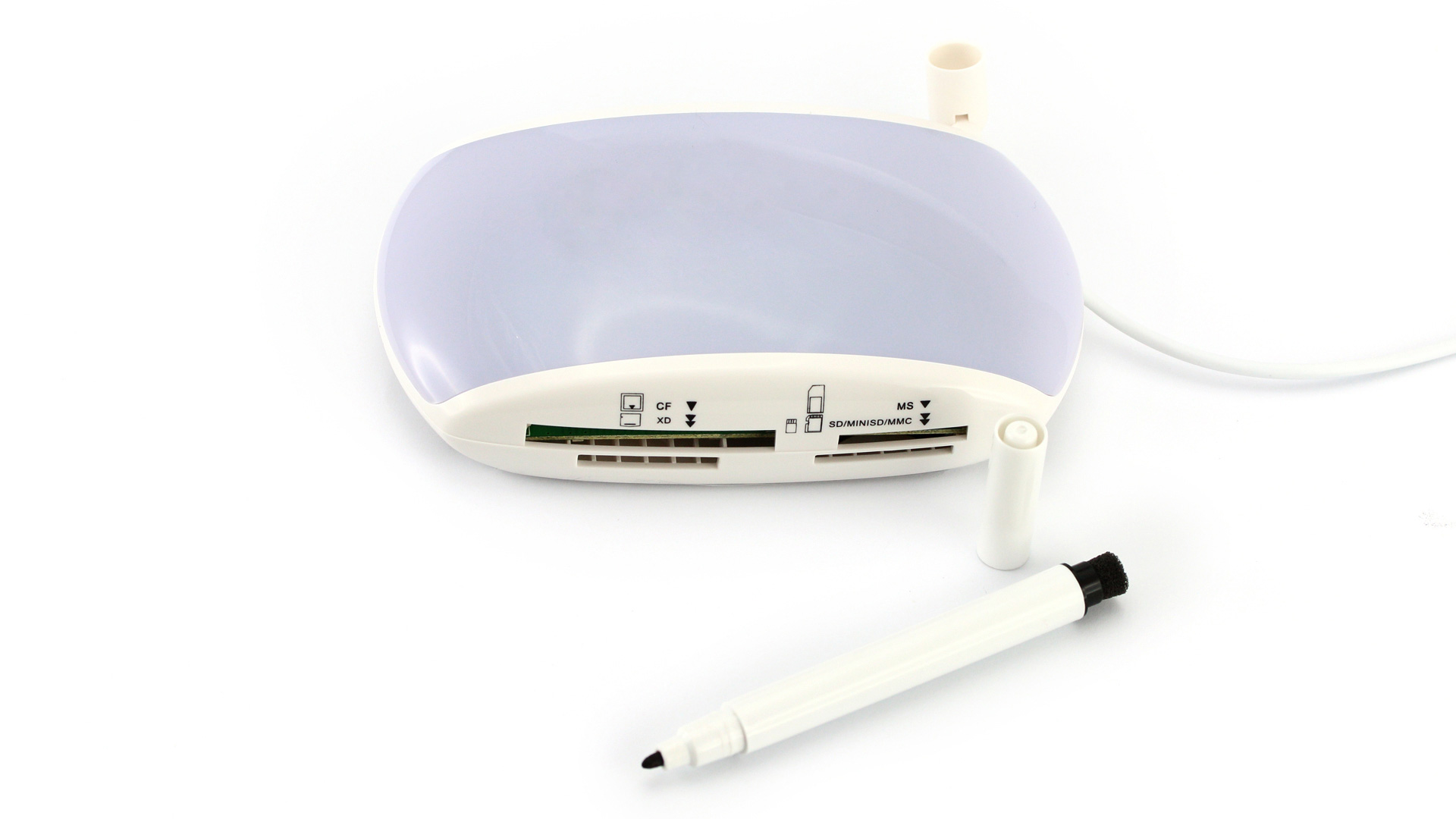 Karten: SD, MiniSD, MMC, XD, MS, CF. Filzstift und Radierer Inklusive
