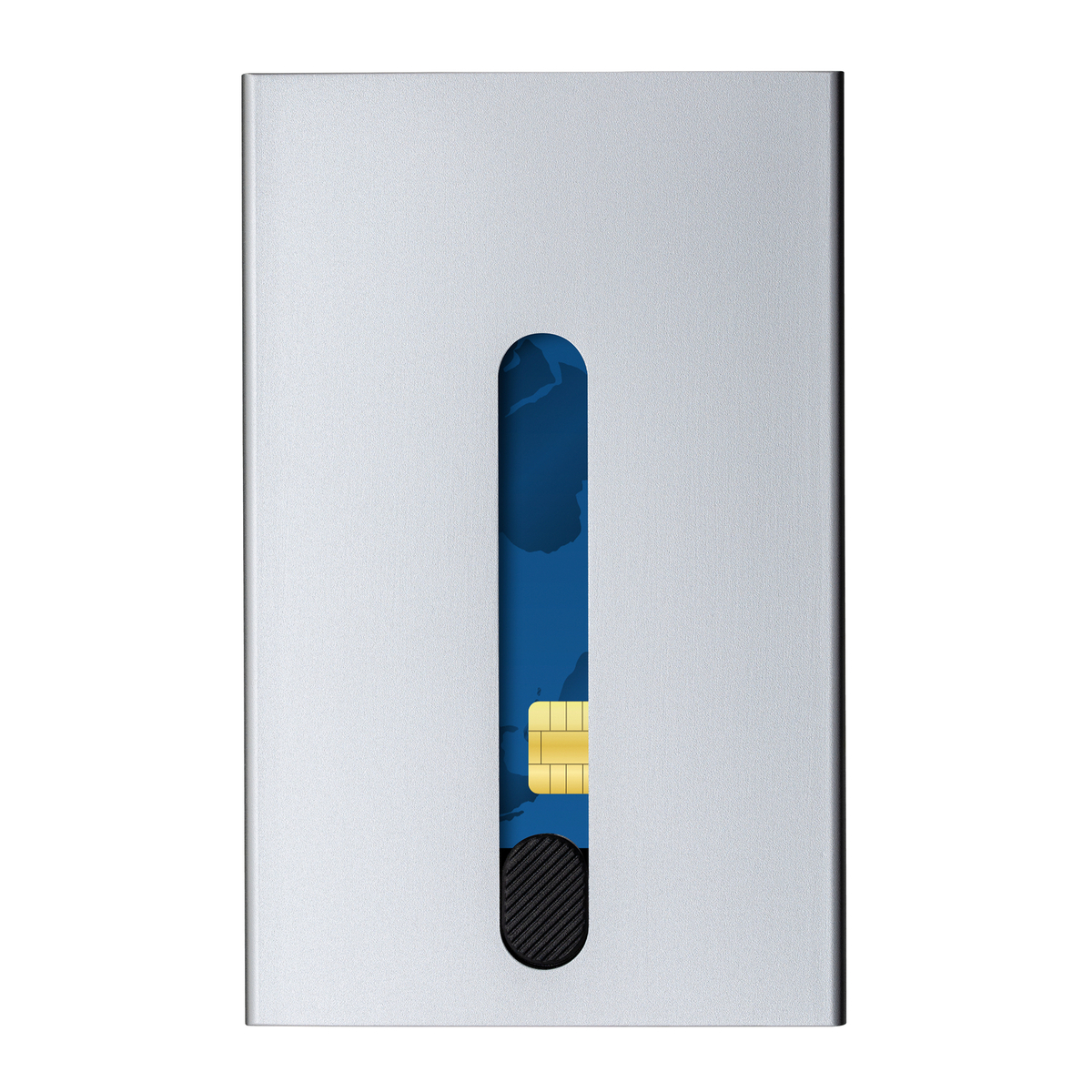 Der Kreditkartenhalter RE98-Grand Ouvert ist eine innovative REFLECTS®-Eigenentwicklung. Mit seiner handlichen Größe passt das Etui in jede Tasche und liegt leicht und angenehm in der Hand. Bis zu 5 Kreditkarten können im Etui aufbewahrt werden. Durch einen intuitiven Schiebemechanismus lassen sich die Karten sanft hochschieben und auffächern, wie bei einem Kartenspiel. Somit ist möglich, einen schnellen Überblick zu haben und die einzelnen Karten mühelos herauszunehmen. Der Kreditkartenhalter ist aus hochwertigem Aluminium und recyceltem ABS-Kunststoff gefertigt. Das Aluminium sorgt für ein leichtes Gewicht und eine edle Optik des Etuis. Zudem bietet das Material einen optimalen RFID-Ausleseschutz. So vereint das Etui Eleganz, Funktion und Sicherheit perfekt in einem. Der RE98-Grand Ouvert kann mittels Lasergravur, Tampondruck oder UV-Druck ausdrucksstark veredelt werden.