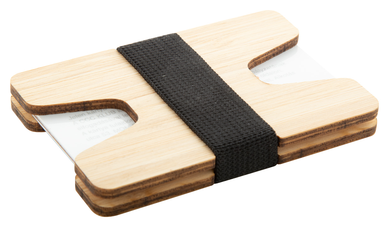 Kartenhalter aus Bambussperrholz, mit Gummiband.