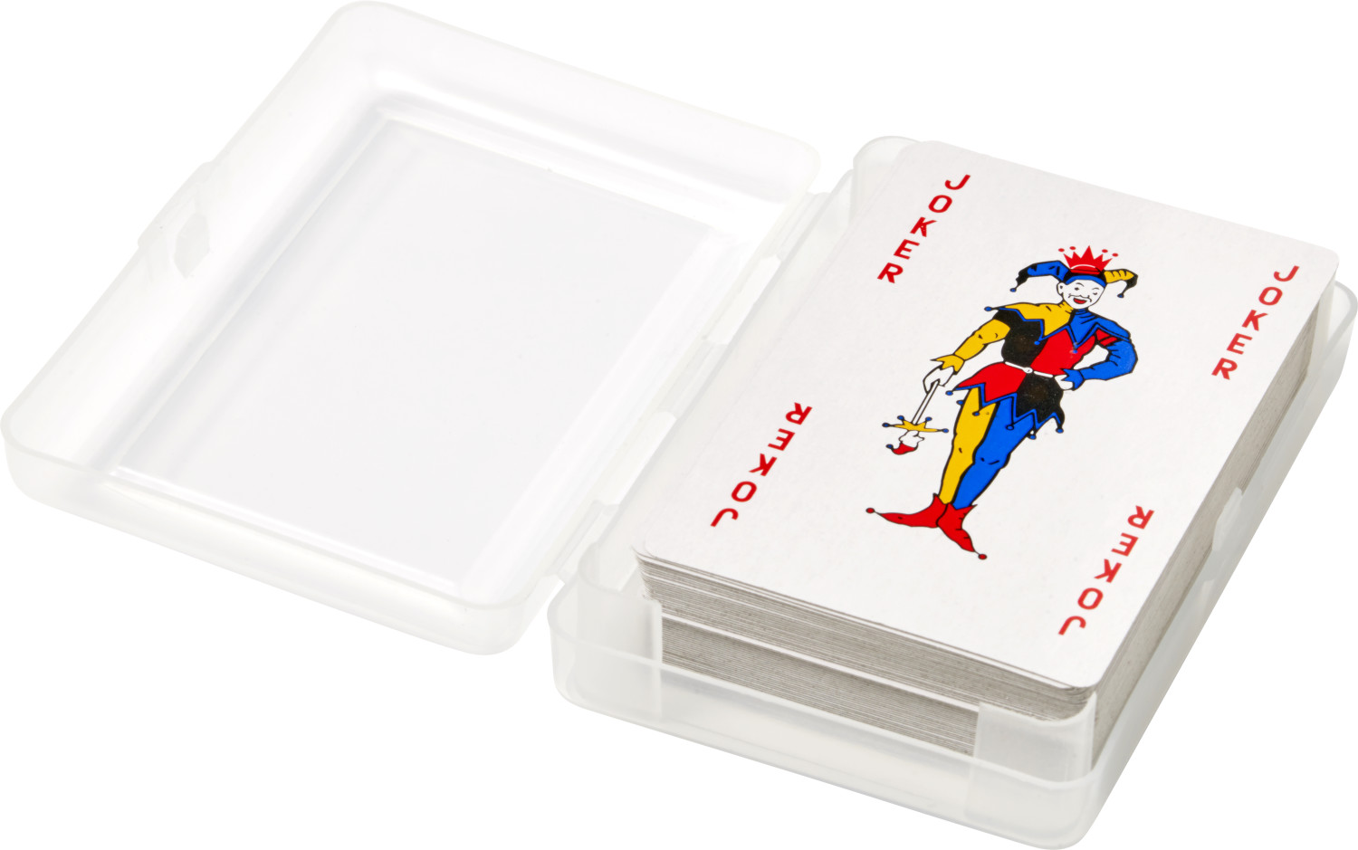 Klassisches Kartenspiel in transparenter PET Box, 54 Karten.
