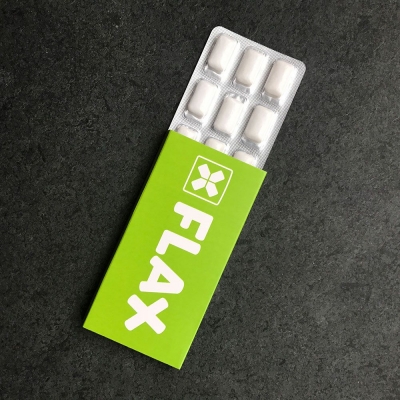 12 Stück leckere, zuckerfreie Pfefferminz-Kaugummis im bedruckten Karton-Schuber. Größe ca. 117 x 58 x 10 mm.