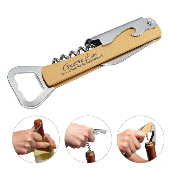 Kellnermesser Bambus aus nachwachsendem Rohstoff, mit 4 Funktionen