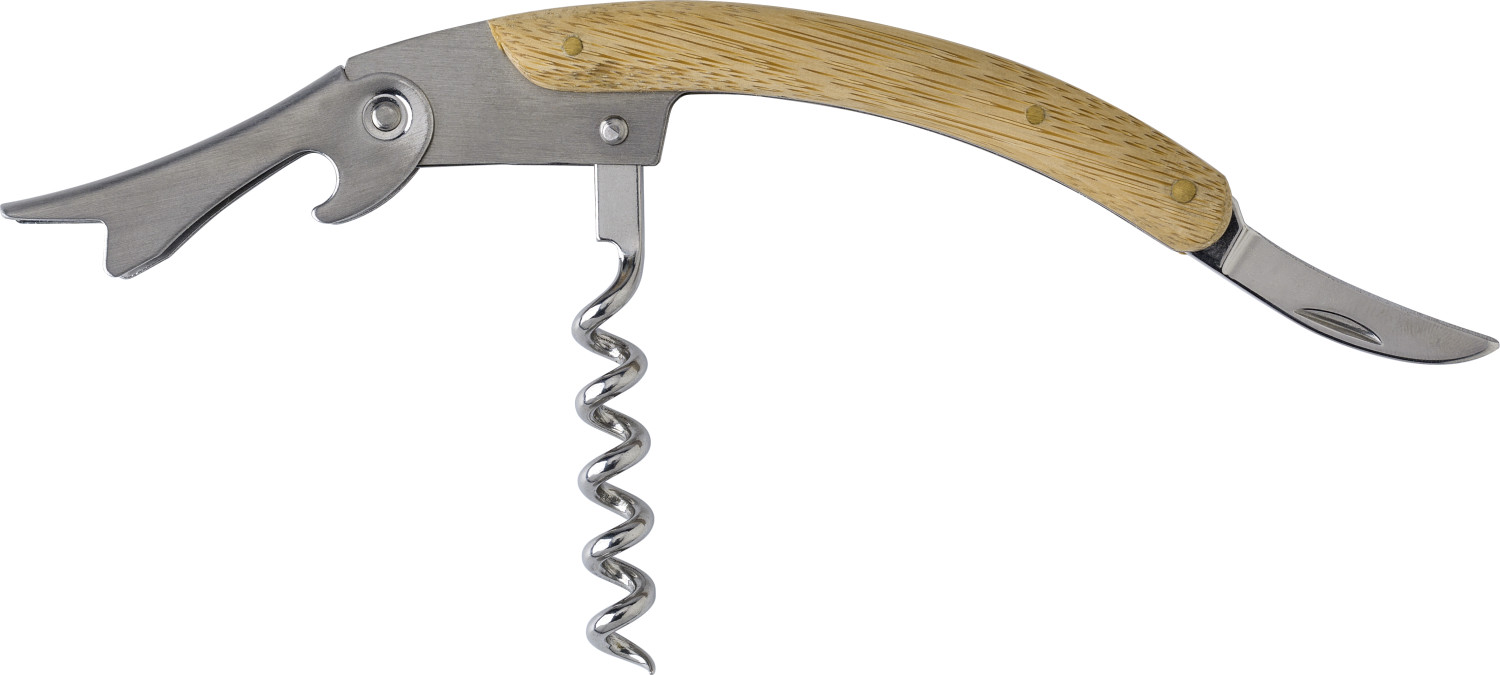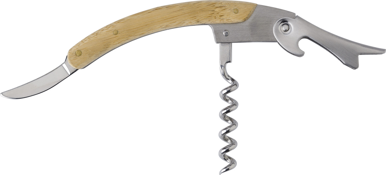 Kellnermesser mit Bambus und Edelstahl mit 3 Funktionen.