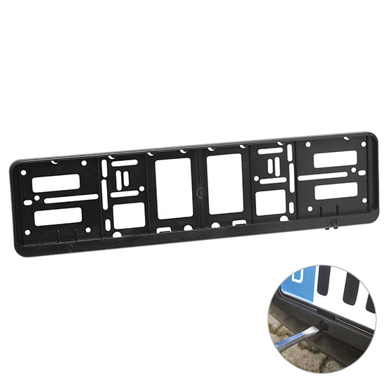 Kennzeichenhalter "Alpha" Nummernschild einlegen und mittels Schraubendreher beide Schlösser verriegeln. Bohrungen in der Rückwand des Kennzeichenhalters erleichtern die Montage am Fahrzeug. Für KfZ-Kennzeichen 520 x 110 mm. Doming möglich.