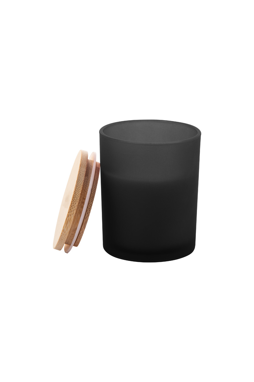 Kerze in gefrostetem Glas mit Bambusdeckel