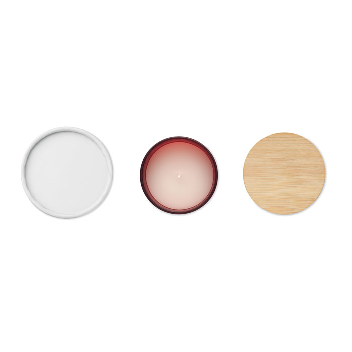 Kerze in gefrostetem Glas mit Bambusdeckel