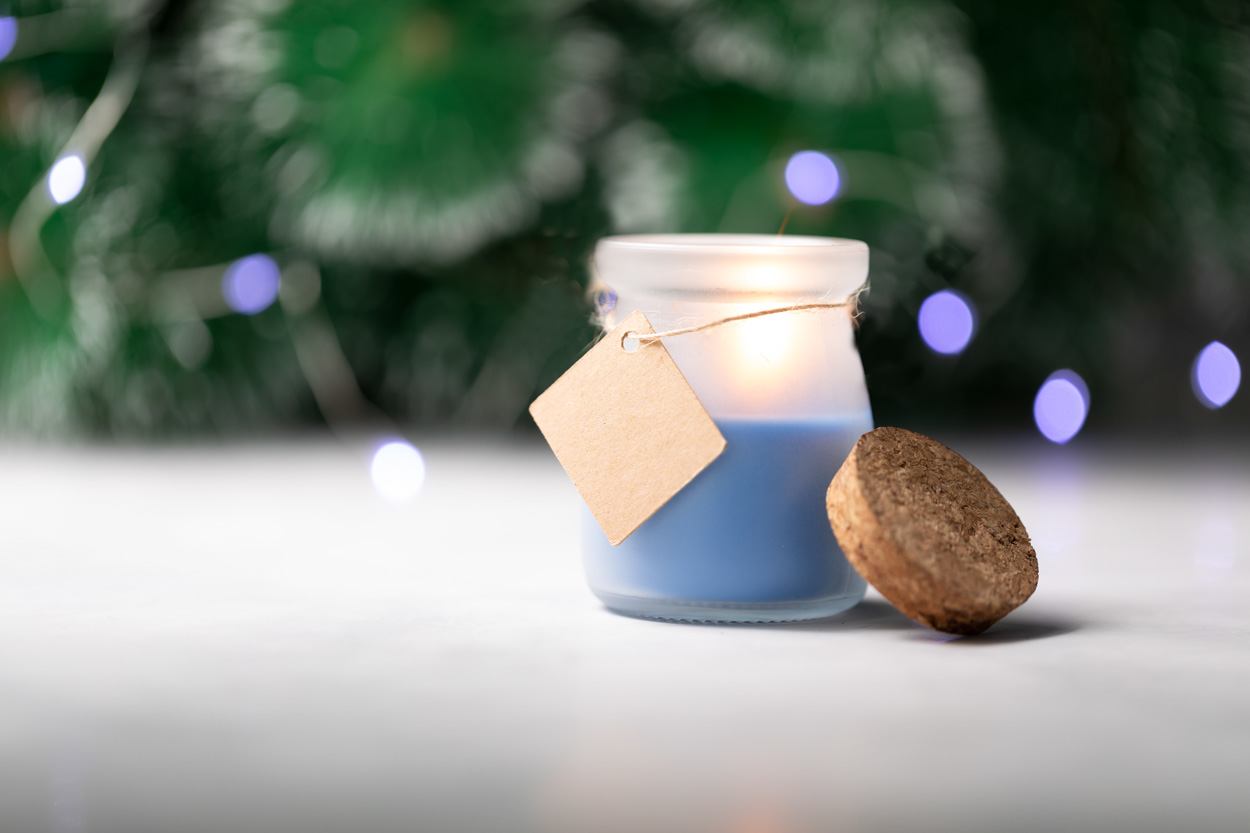 Ambra Quadratische Glaskerze mit Bambusdeckel