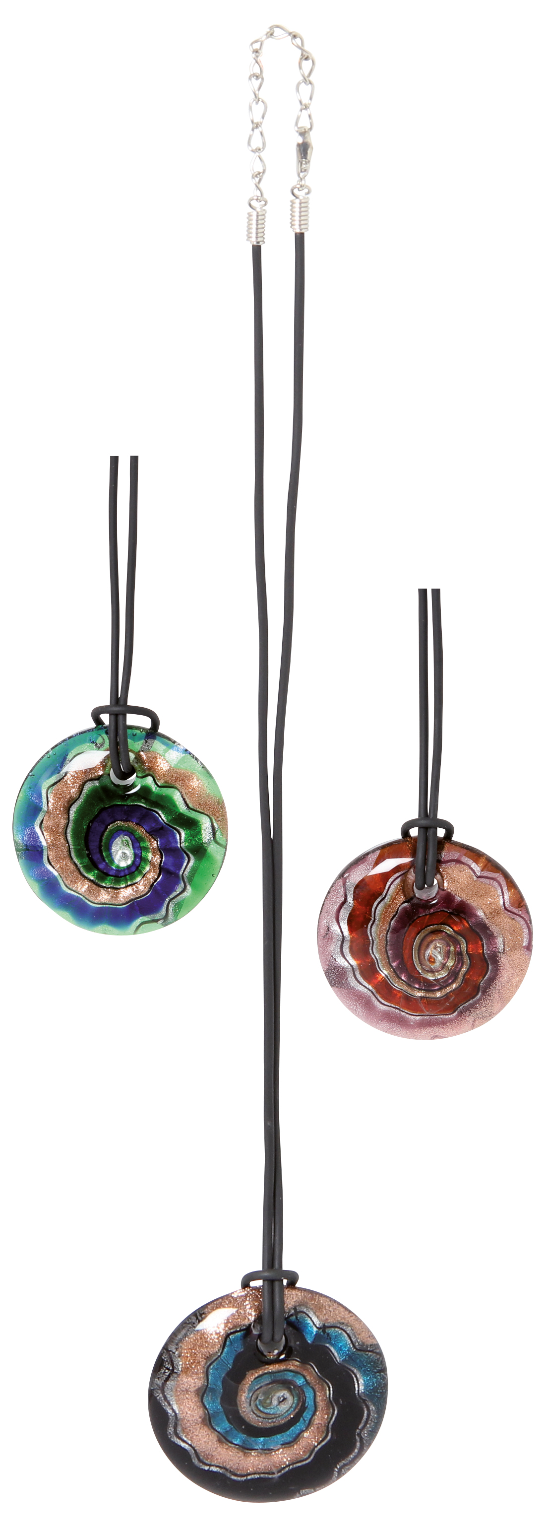 Trendige Halskette aus Kordel und Glas-Amulett. Verschiedene Farben sortiert.