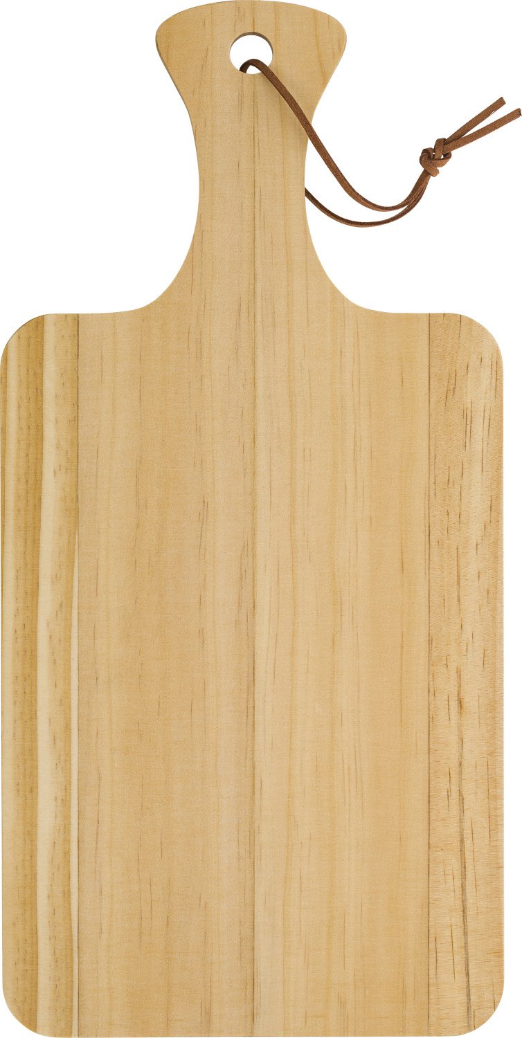 Schneidebrett aus Kiefernholz mit Seil. Einzeln verpackt in einer braunen Kartonage.