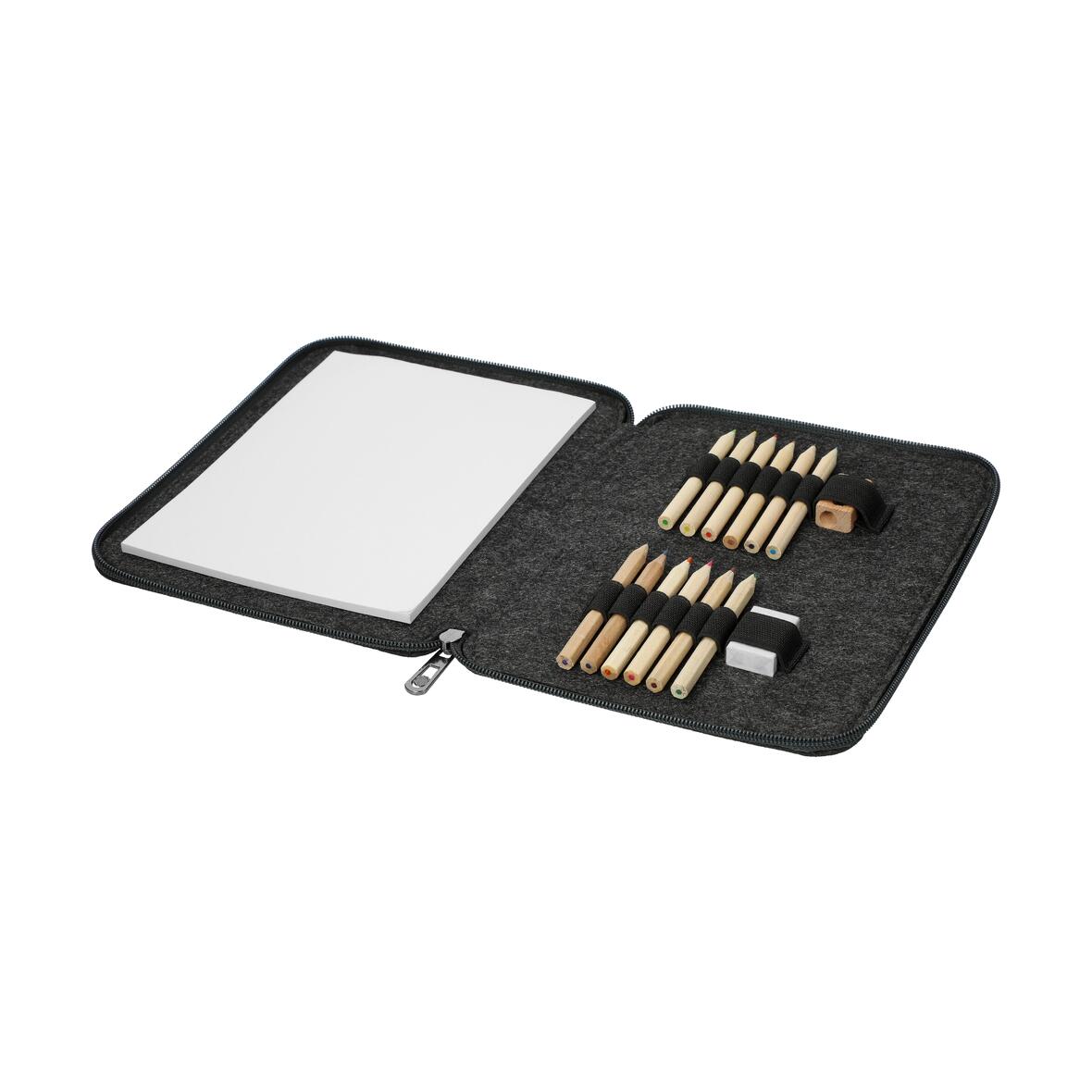 Das Kindermalmäppchen "Fantasia" bringt Kreativität und Ordnung zusammen! Aus hochwertigem Filz gefertigt, bietet es mit einer Größe von 22 x 17 cm genügend Platz für alle Malutensilien. Das Set enthält einen Malblock, kleine Stifte, einen Radiergummi und einen Spitzer – alles griffbereit für kleine Künstler. Ideal für unterwegs oder zu Hause, sorgt es für endlosen Malspaß und Ordnung zugleich!