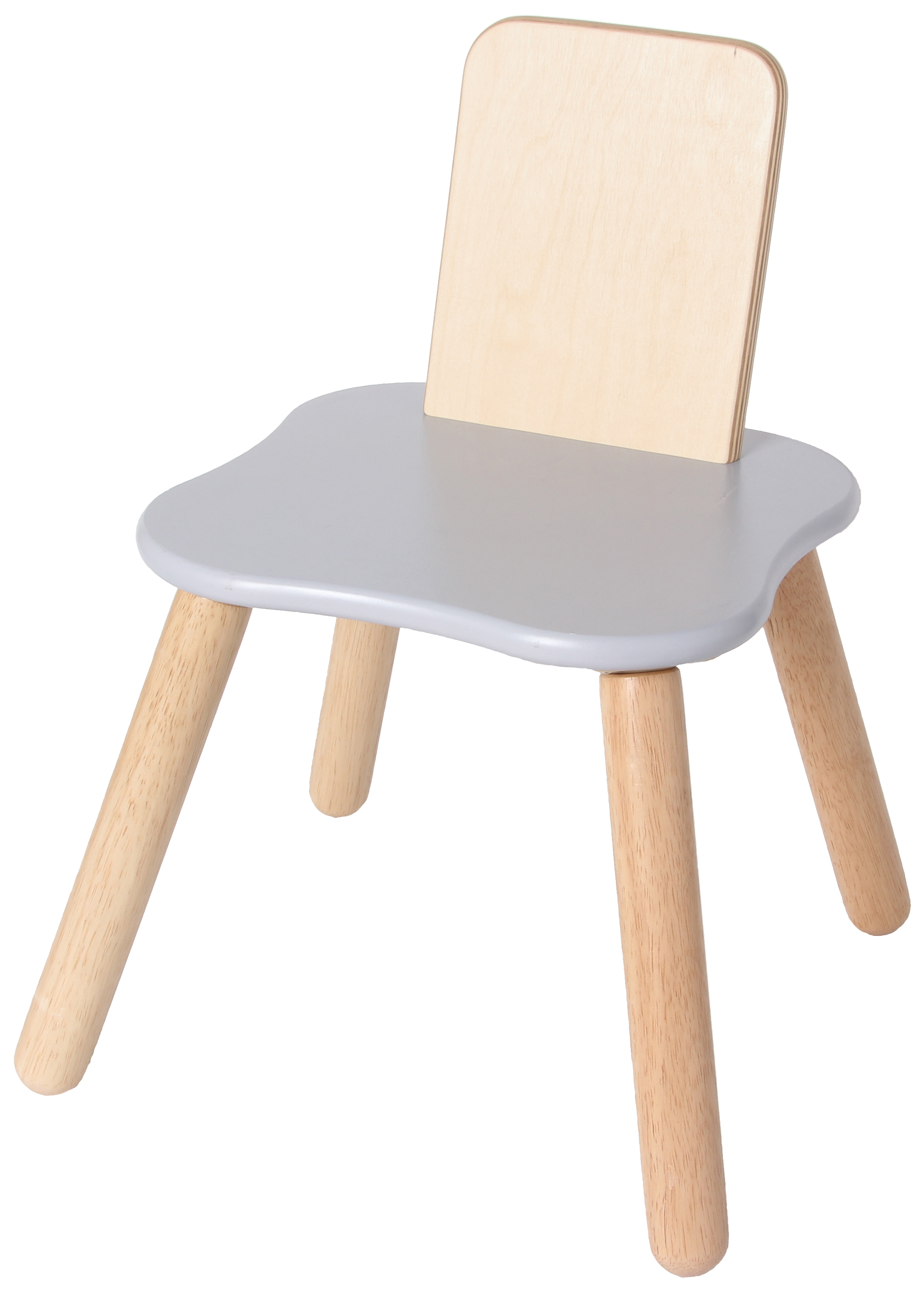 Massiver Holzstuhl mit abgerundeten Ecken und Kanten. Das weiche Kissen der Rückenlehne ist abnehm- und waschbar. Stuhlhöhe: 46 cm. Sitzhöhe: 28 cm.