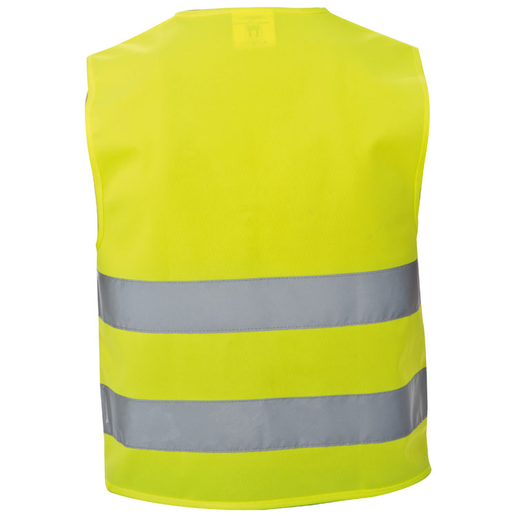 Kinderwarnweste aus Polyester. Erfüllt alle erforderlichen EU-Standards. Ihre Werbung drucken wir auf die Brust (Herzseite). Druck auf dem Rücken möglich.