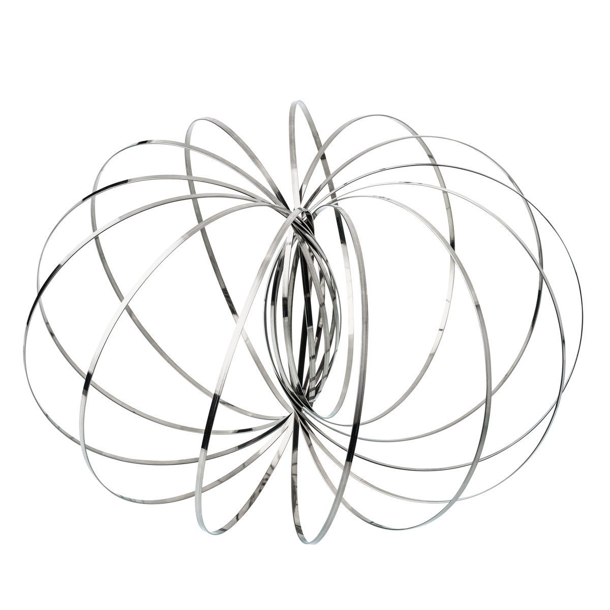 Der neueste Hype für Stressgeplagte und Hobby-Jongleure: Das interaktive Spielzeug für Erwachsene wurde Anfang der neunziger Jahren erfunden und ist eine skulpturale Ringspirale, die ineinander verschränkt ist. Man kann sie ganz flach, als Ring zusammenlegen oder zur Skulptur öffnen. Um damit zu spielen, muss man einfach die Hand durch den Zwischenraum der Spirale führen. Sie rollt dann am Arm auf und ab, lässt sich auf den anderen Arm rollen oder an einen Mitspieler weitergeben. Die Spirale wirkt entspannend und ist ideal fürs Büro oder daheim.