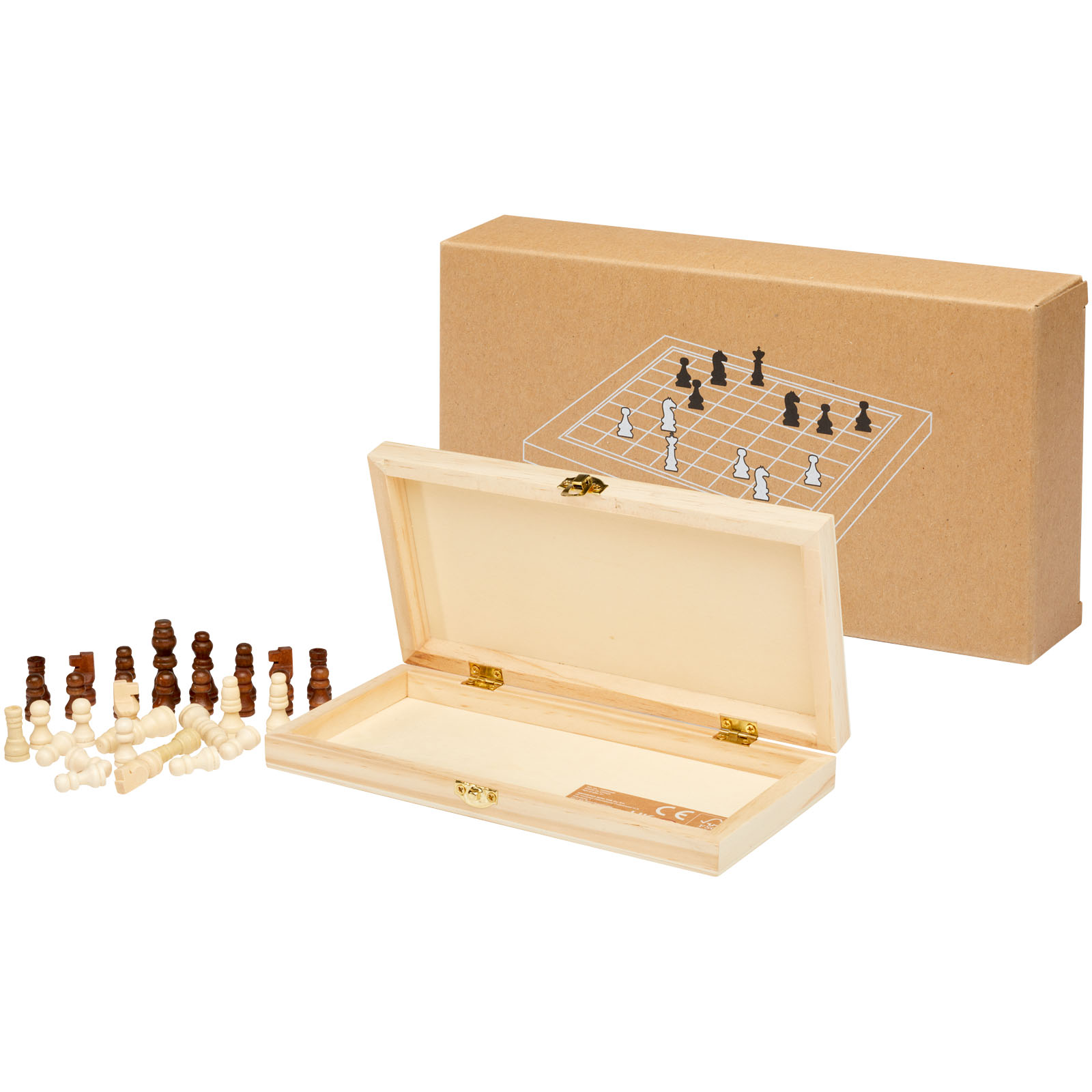 Genießen Sie die intellektuelle Stimulation des Schachspiels, wo immer Sie sind, mit dem Schach-Set King. Dieses Set bietet eine perfekte Kombination aus Tragbarkeit und Eleganz. Es enthält 32 Schachfiguren in den Farben Braun und Elfenbein, die wunderschön aus verantwortungsvoll beschafftem Kiefernholz gefertigt sind. Der faltbare Holzkoffer macht Aufbewahrung und Transport bequem. Die stabilen Metallscharniere und das Schloss sorgen dafür, dass das Schachspiel immer sicher und geschützt bleibt. Verpackt in einer Geschenkbox aus Kraftpapier, mit Bedienungsanleitung. Achtung! Nicht für Kinder unter drei Jahren geeignet. Verschluckbare Kleinteile, Erstickungsgefahr.