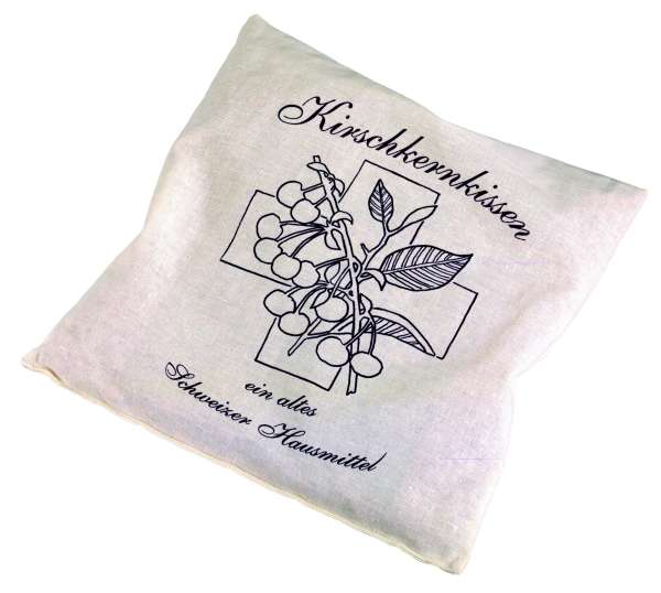 Kirschkernkissen nach dem Ursprung des altbewährten Schweizer Hausmittels. Wärme für das Wehwehchen, Wärme für die Seele und Wärme für Fuß, Bauch, Brust und Nacken. Die lang anhaltende Wärme, der anschmiegsamen Kerne, bringen Behaglichkeit. Der Natur-Baumwollstoff kann ab 100 Stück bedruckt werden. Alternativ ist die Beilage einer Kundenkarte möglich. Andere Abmessungen sind möglich. Das Standardkissen im Format 24 x 24 cm ist der ideale Wärmebringer.