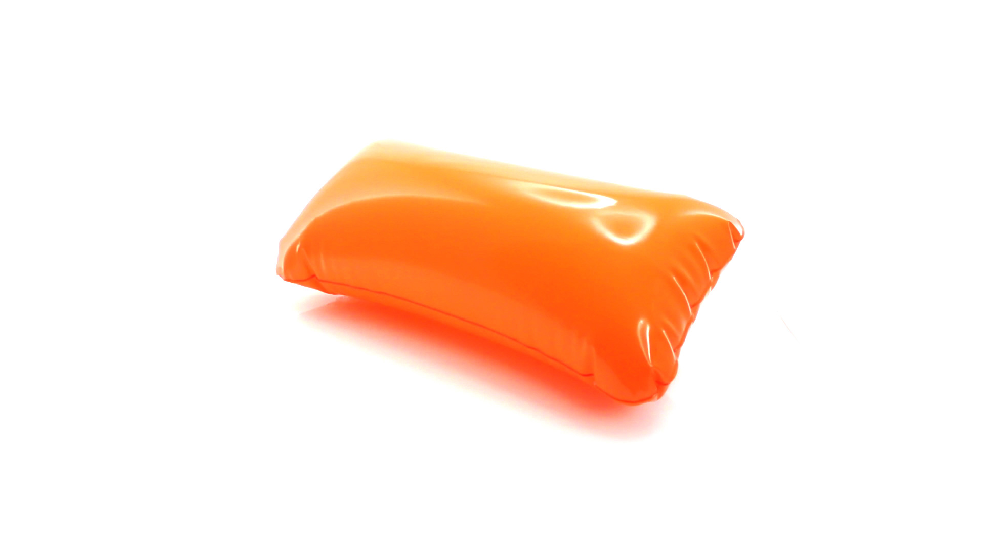 Aufblasbares Kissen aus robustem PVC in kräftigen Farben.