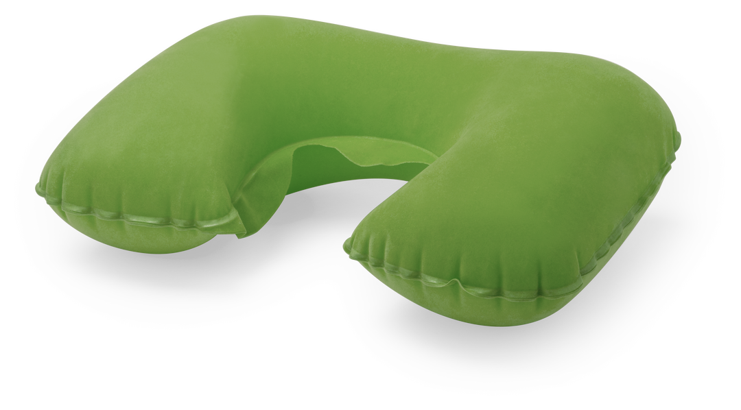 Aufblasbares Nackenkissen aus weichem Wildleder in verschiedenen lebendigen Farben.