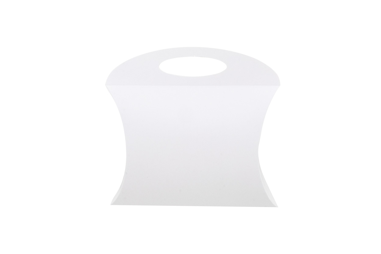 Individuelle, vollfarbig bedruckte Kissenbox aus Pappe mit Griff. Die Lieferung erfolgt flach verpackt. Mindestmenge: 50 Stk.