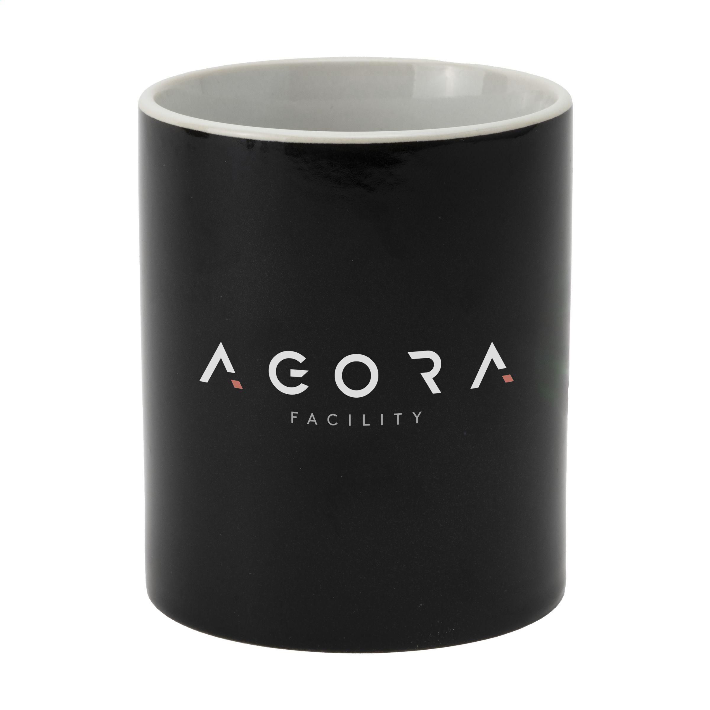 Becher aus hochwertiger Keramik. Komplett in weiß oder mit farbiger Außenseite. Spülmaschinengeeignet. Der Aufdruck ist spülmaschinengeprüft und nach EN 12875-2 zertifiziert. Fassungsvermögen 350 ml.