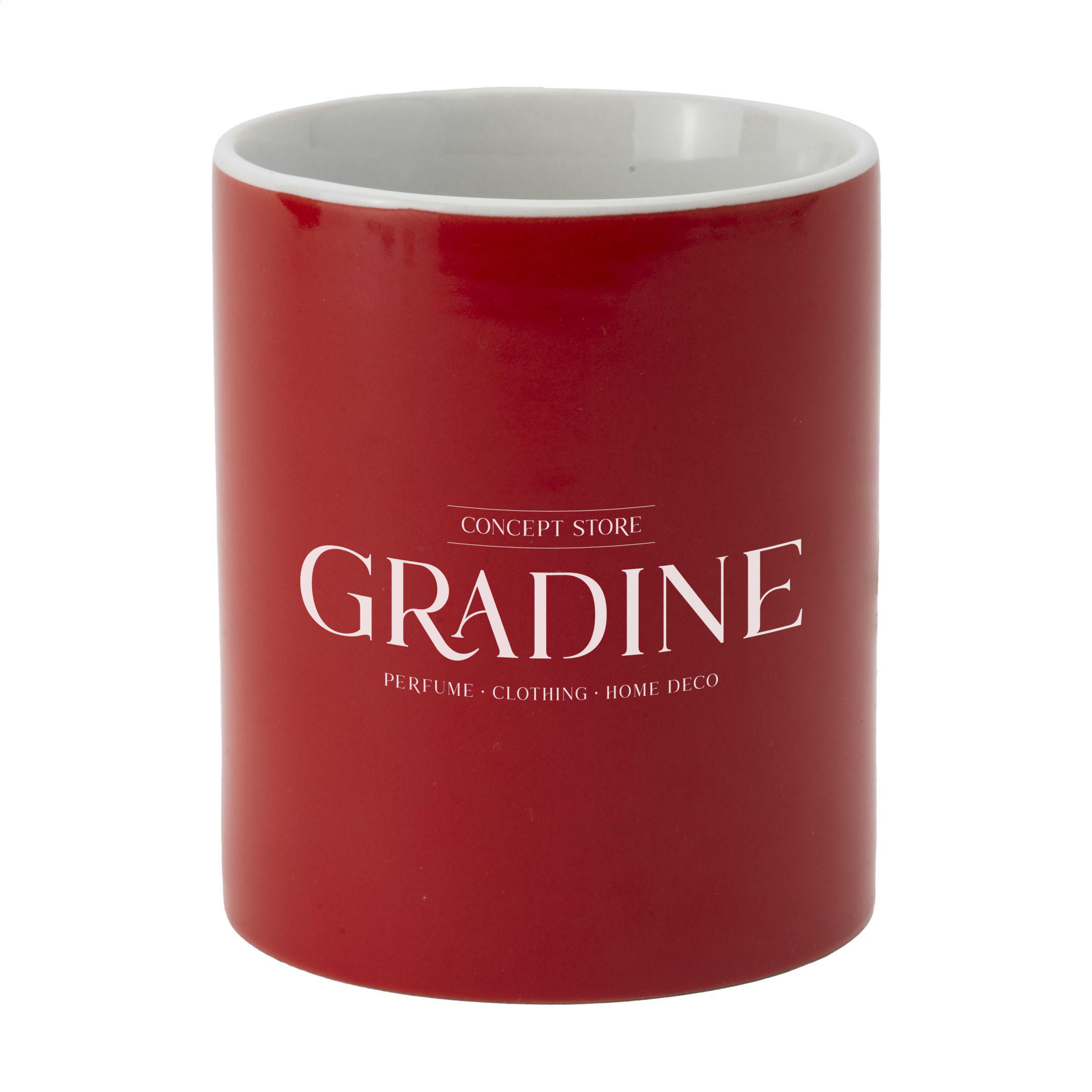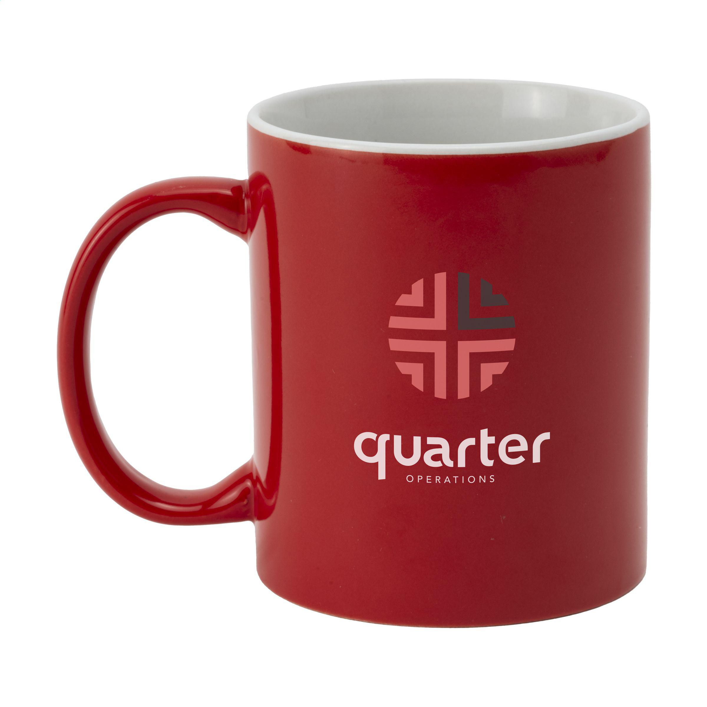 Becher aus hochwertiger Keramik. Komplett in weiß oder mit farbiger Außenseite. Spülmaschinengeeignet. Der Aufdruck ist spülmaschinengeprüft und nach EN 12875-2 zertifiziert. Fassungsvermögen 350 ml.