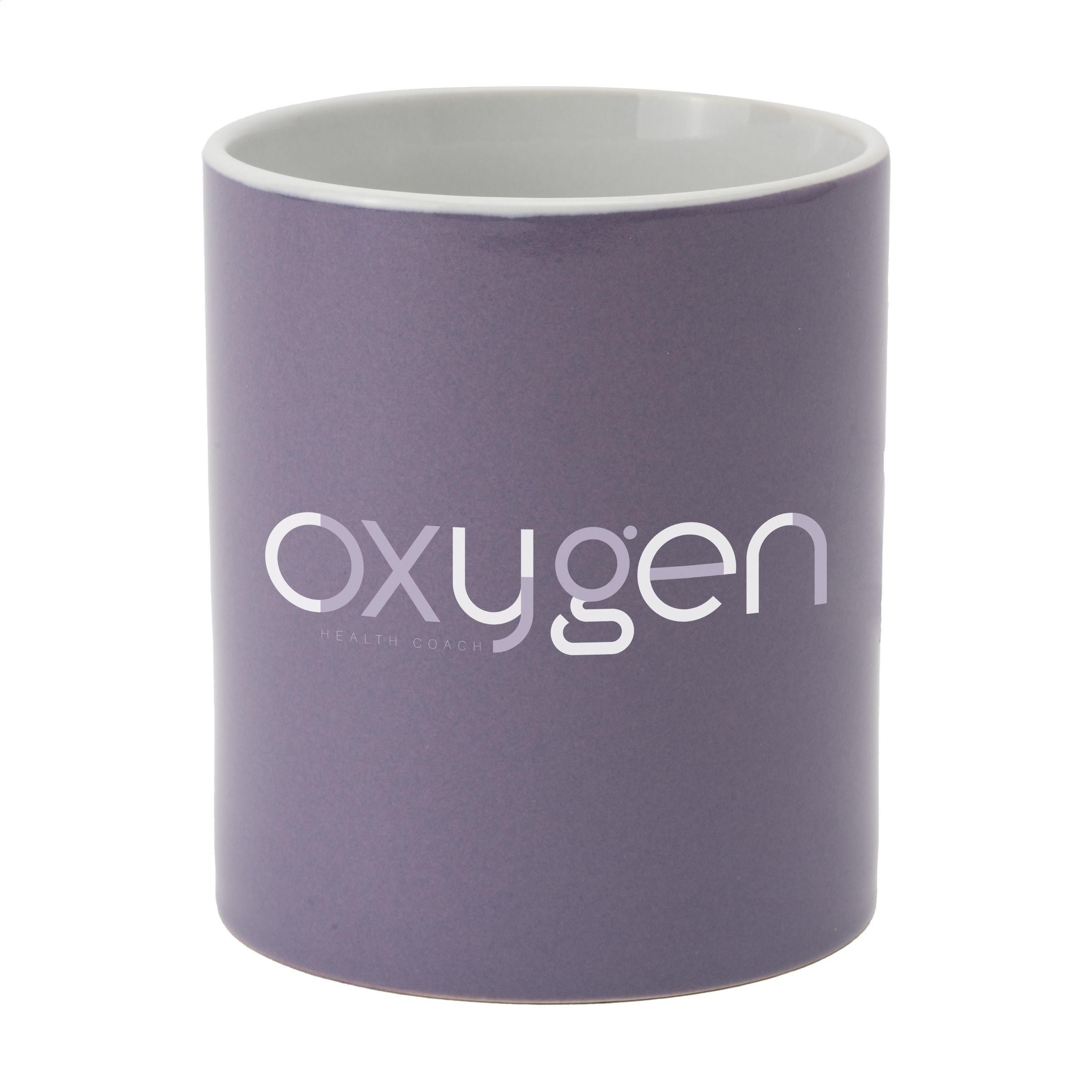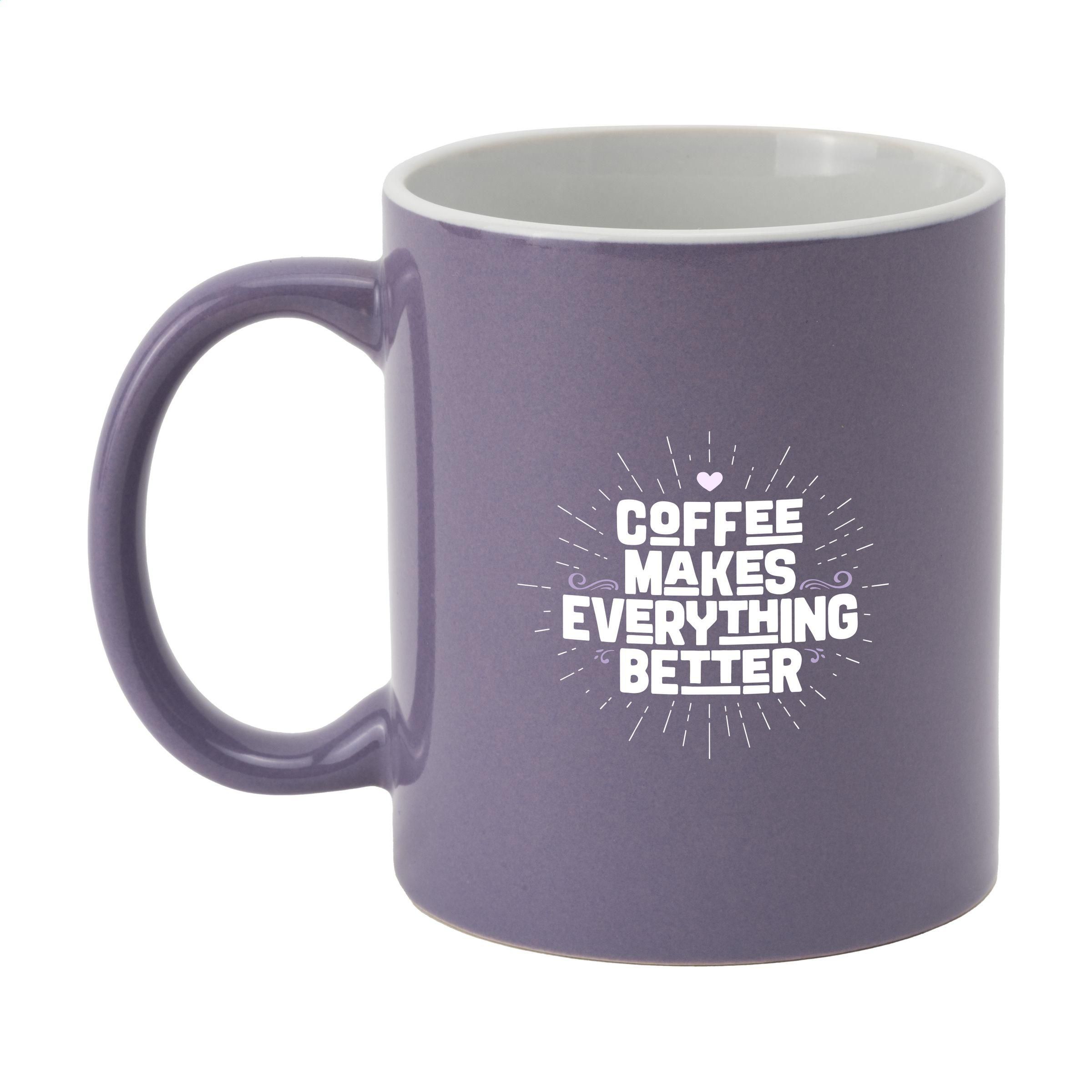 Becher aus hochwertiger Keramik. Komplett in weiß oder mit farbiger Außenseite. Spülmaschinengeeignet. Der Aufdruck ist spülmaschinengeprüft und nach EN 12875-2 zertifiziert. Fassungsvermögen 350 ml.