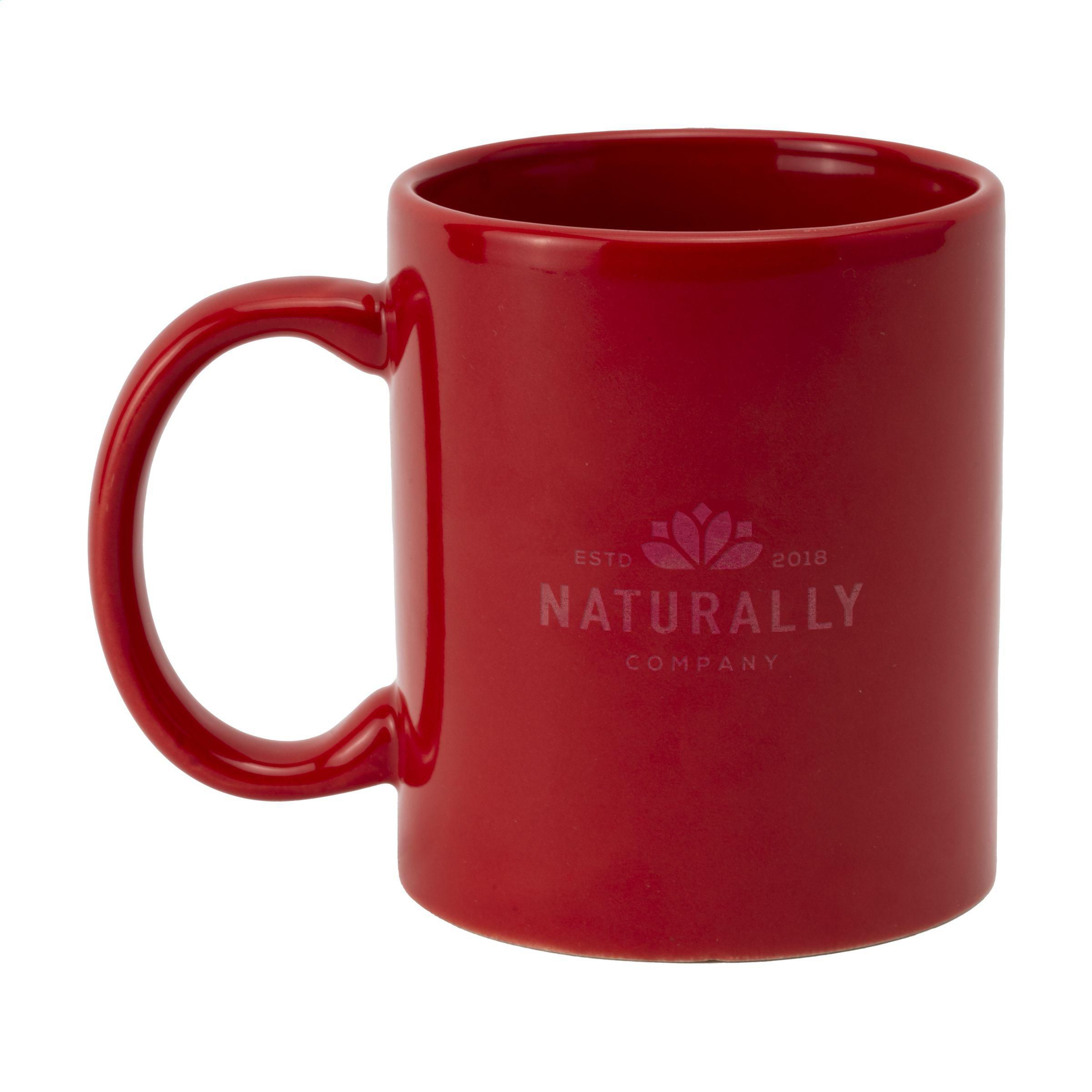 Becher aus hochwertiger Keramik. Komplett in weiß oder mit farbiger Außenseite. Spülmaschinengeeignet. Der Aufdruck ist spülmaschinengeprüft und nach EN 12875-2 zertifiziert. Fassungsvermögen 350 ml.