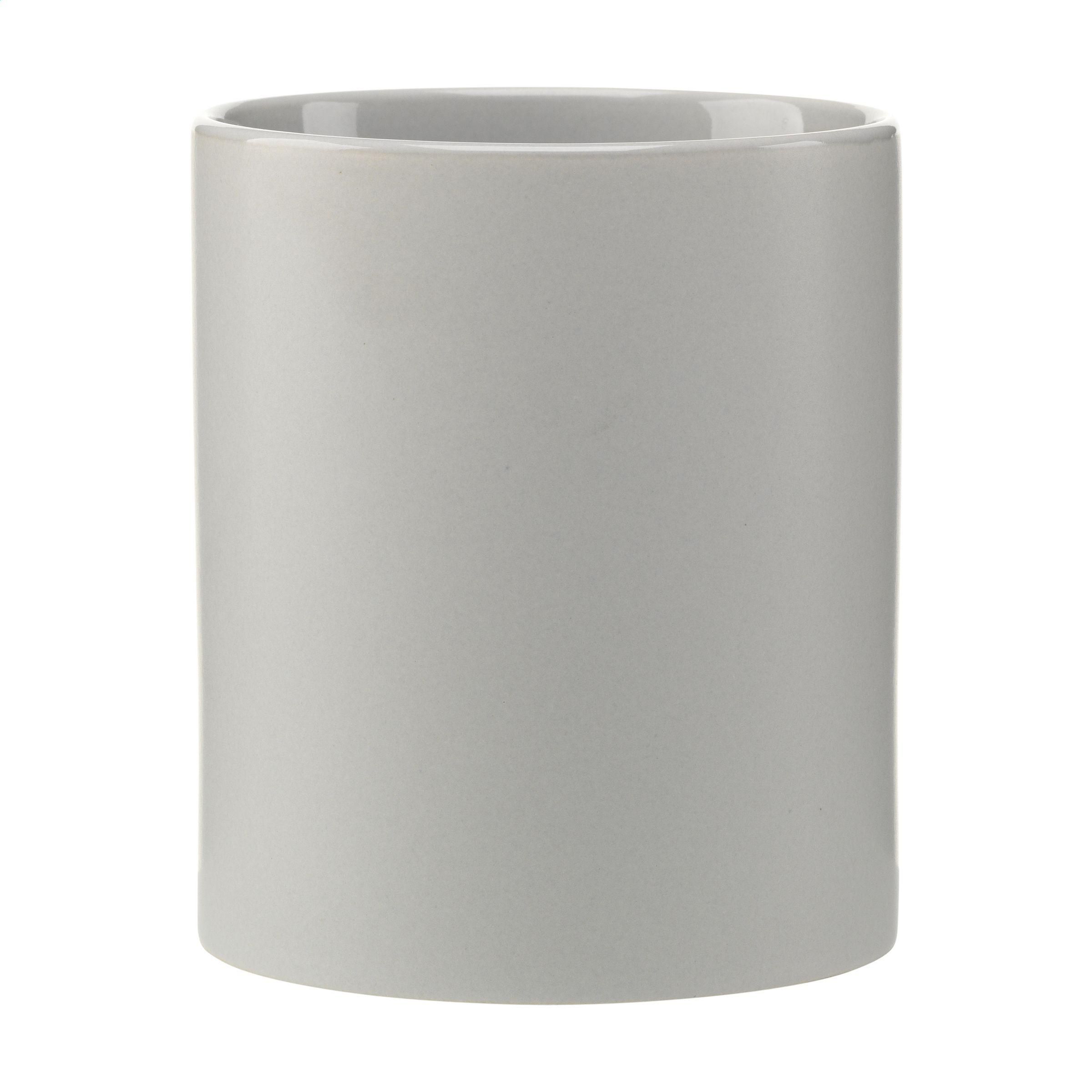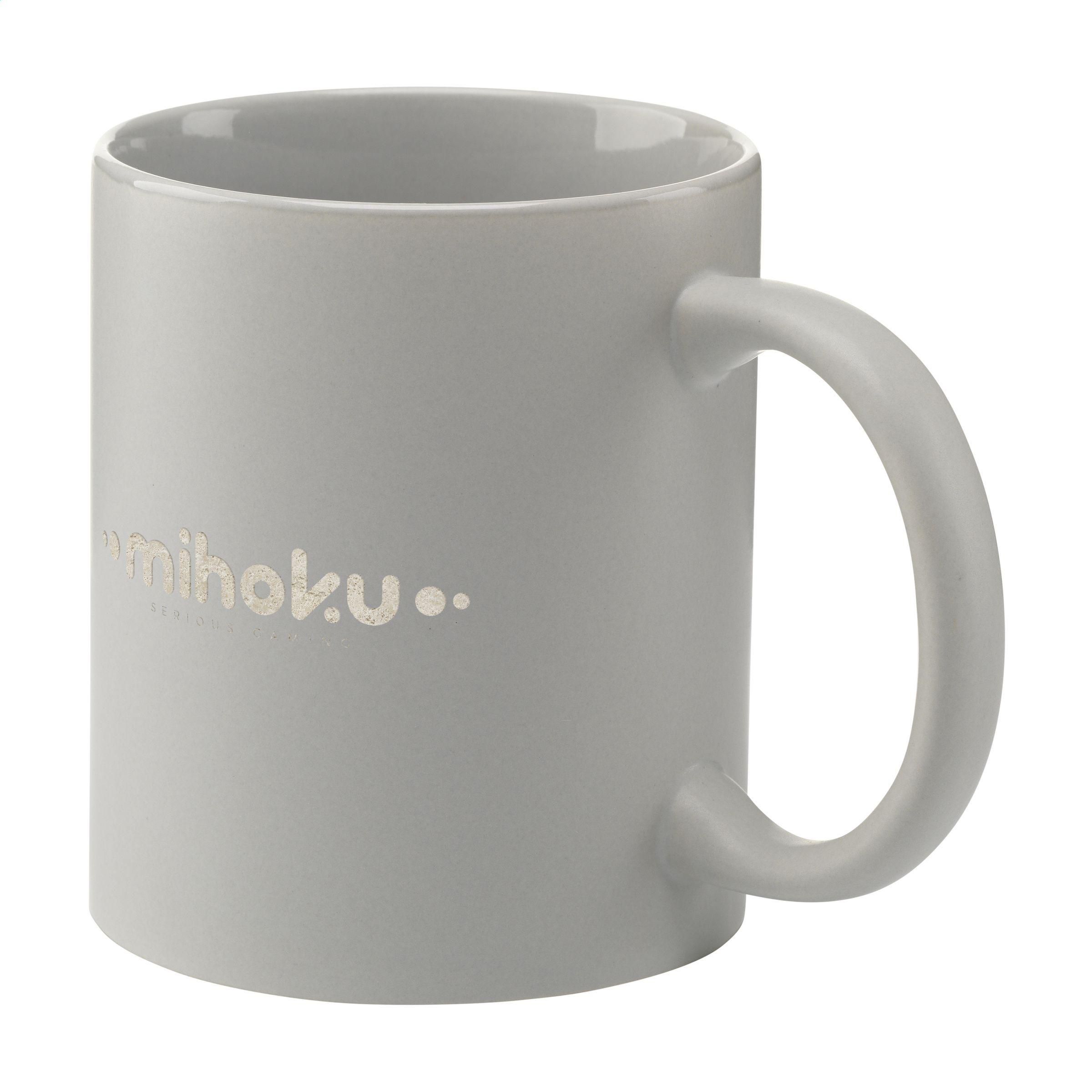 Becher aus hochwertiger Keramik mit mattierter Außenseite und glänzender Innenseite. Spülmaschinengeeignet. Der Aufdruck ist spülmaschinengeprüft und nach EN 12875-2 zertifiziert. Fassungsvermögen 350 ml.