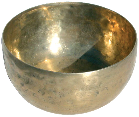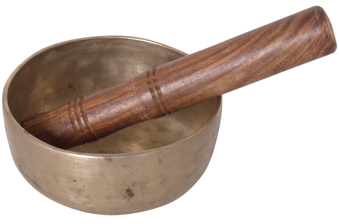 Aus Messing mit Holzklöppel. Reine Handarbeit - daher kann die Klangschale in Größe, Gewicht, Design variieren. Mit dem Holzklöppel bringt man die sehr schön und anhaltend tönende Schale zum Klingen. Ein Samtkissen mit Brokatbordüre zum Aufsetzen der Klangschale erhalten Sie mit der Art.-Nr. 109854.