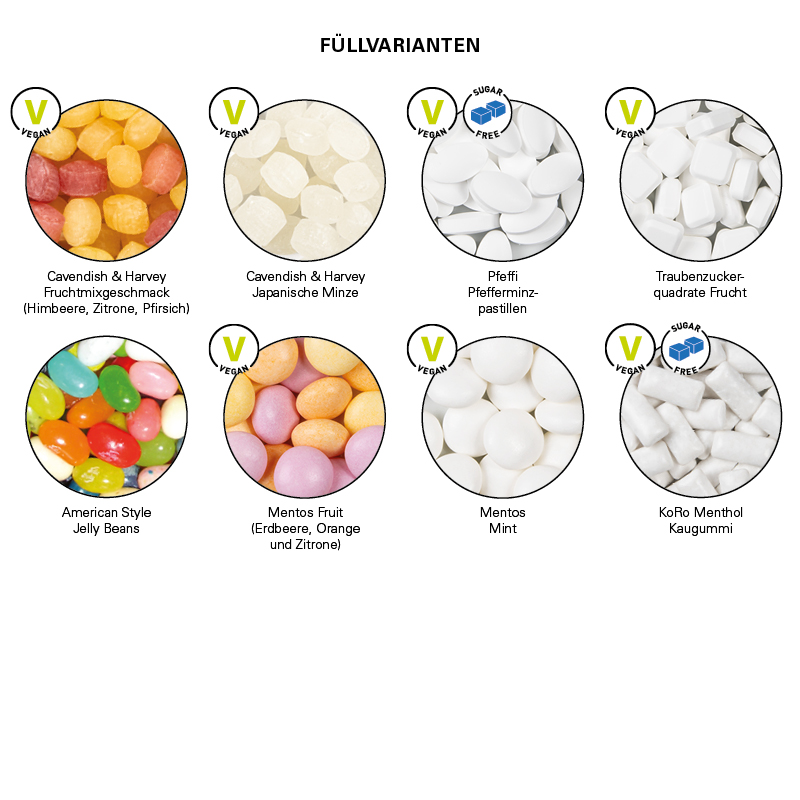 Mentos oder Pfeffi oder American Style Jelly Beans oder KoRo oder Cavendish & Harvey