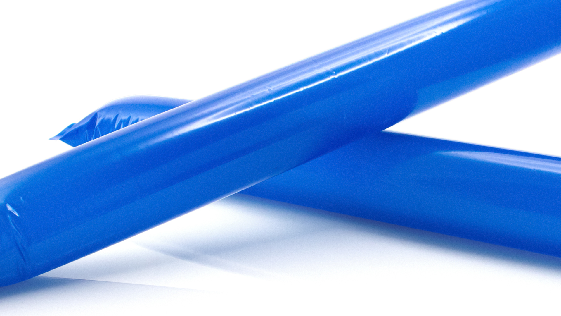 Zwei Krachmacher aus widerstandsfähigem, lautem LDPE-Kunststoff in lebendigen Farben. Wiederverwendbar und mit Ventil.