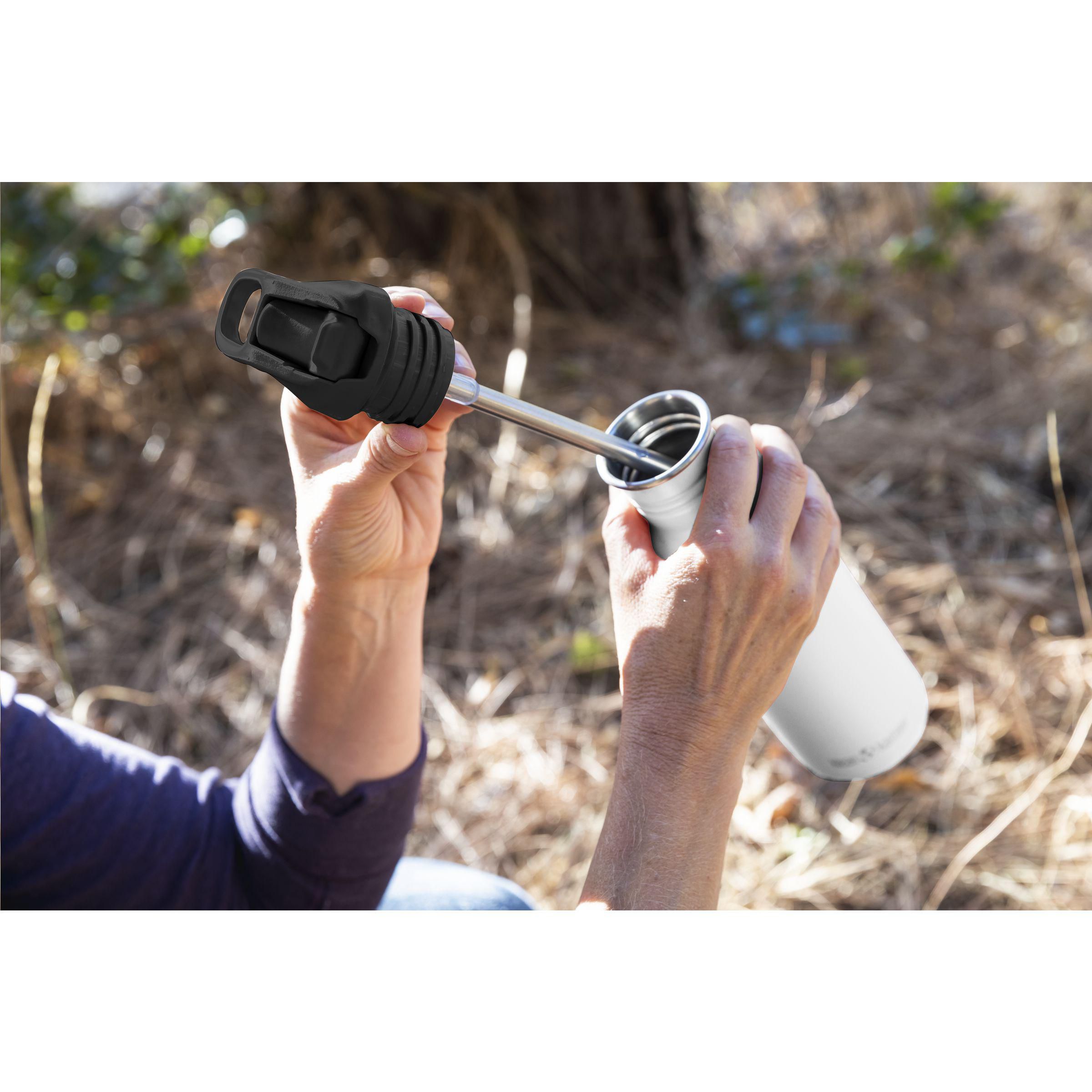 Einwandige Wasserflasche der Marke Klean Kanteen. Diese hochwertige Trinkflasche ist aus zertifiziertem, zu 90% recyceltem 18/8-Edelstahl hergestellt. Der auslaufsichere Flip Seal Sport Cap lässt sich mit einer einfachen Daumenbewegung öffnen und schließen und bietet zwei praktische Trinkoptionen. Halten Sie die Flasche aufrecht, um über den abnehmbaren Strohhalm aus Edelstahl zu trinken, oder entfernen Sie den Strohhalm und kippen Sie die Flasche, um sie als herkömmliche Sportflasche zu verwenden. Entwickelt für vielseitige Flüssigkeitszufuhr bei intensiven Aktivitäten. Wie auch immer Sie trinken, das ergonomische Design des Verschlusses gewährleistet einen konstanten Trinkfluss und ist absolut auslaufsicher. Das schlanke Modell hat einen stabilen Boden, passt in die meisten Becherhalter und ist mit einer stoßfesten Klean Coat® Pulverbeschichtung versehen. Geschmacks- und geruchsneutral. Dieses Produkt ist spülmaschinenfest. Um den Aufdruck zu erhalten, wird Waschen von Hand empfohlen. Fassungsvermögen 800 ml. Klean Kanteen ist Klimaneutral zertifiziert und Mitglied bei 1% For the Planet und unterstützt damit Umweltorganisationen.