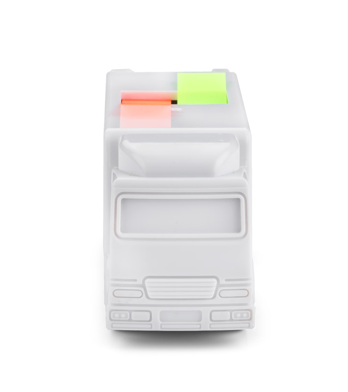Die Klebezettel CARGO enthalten Haftstreifen aus Folie in 2 Farben (2 Blöcke à 20 Stück). Das ansprechende Aussehen des Spenders in Form eines LKWs ist eine interessante Dekoration des Schreibtisches. Aus Kunststoff hergestellt.