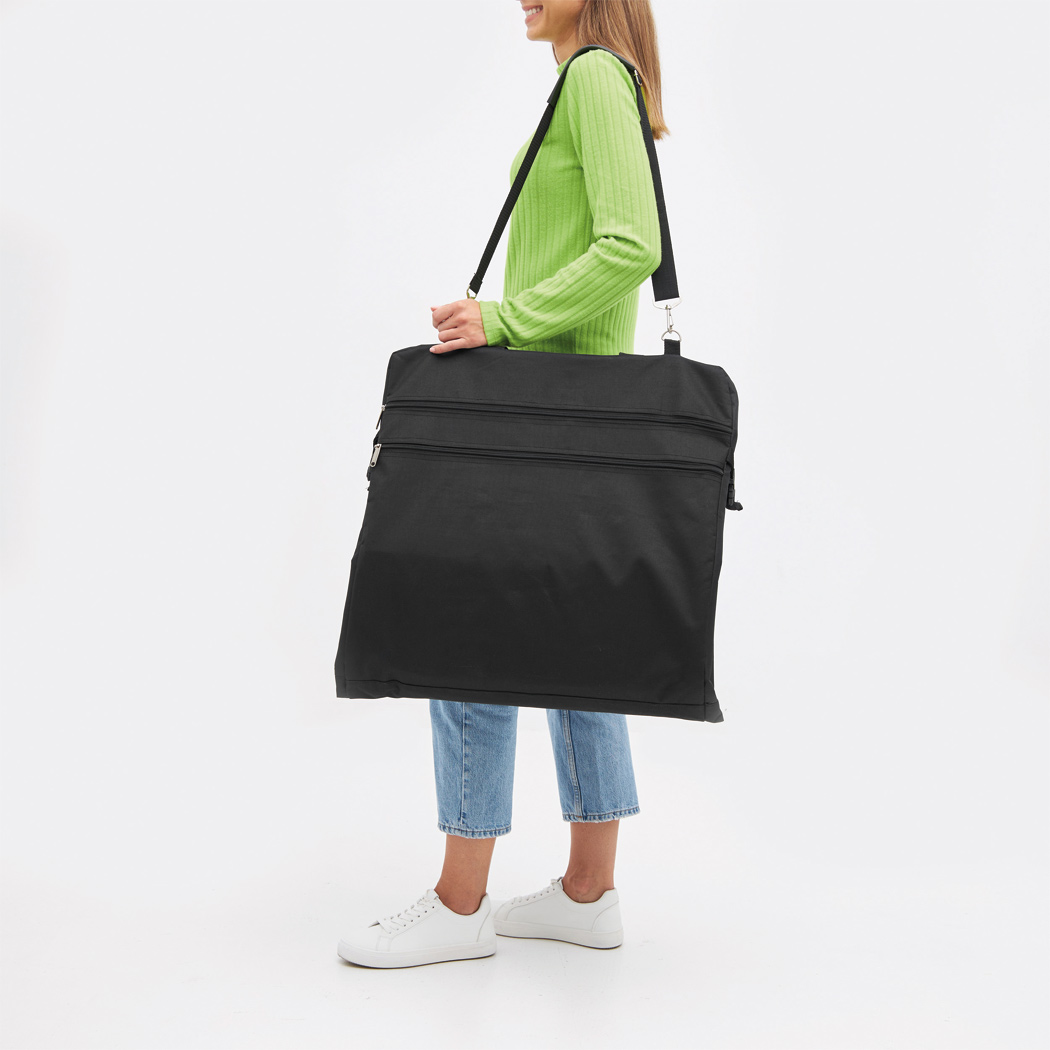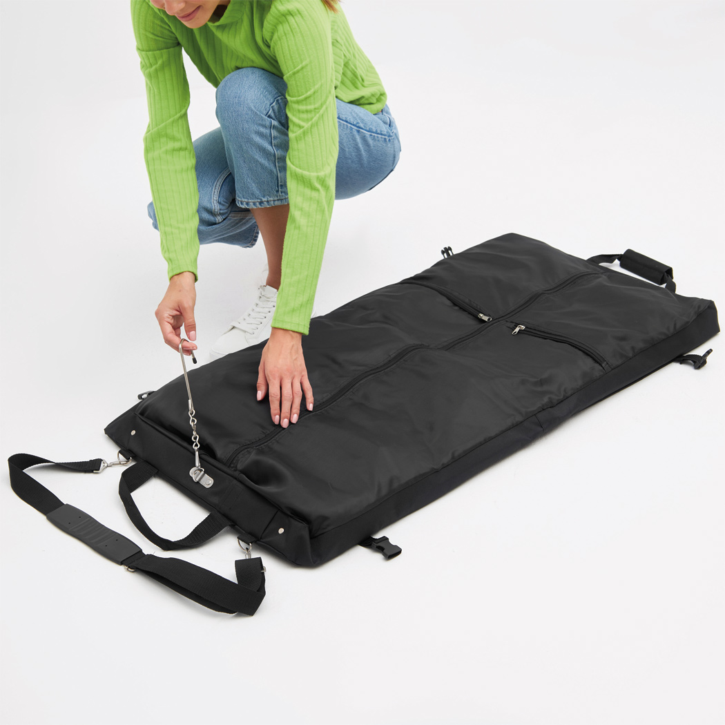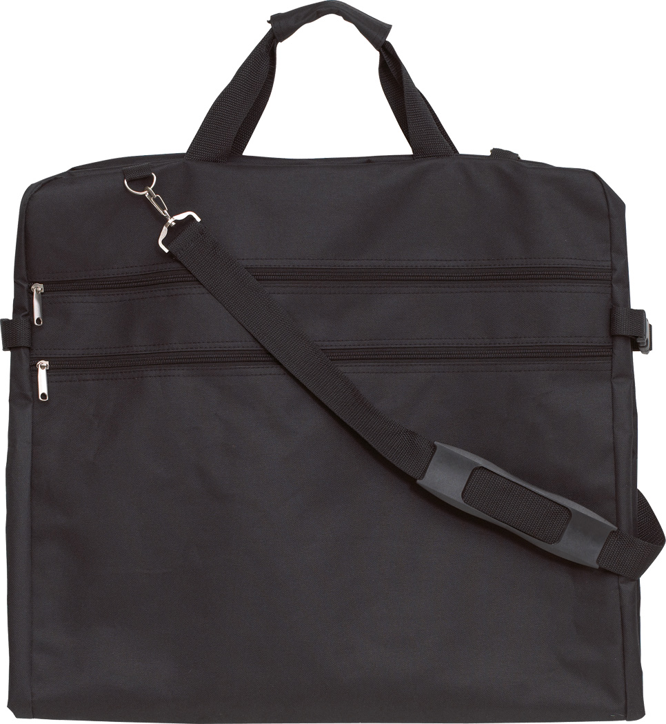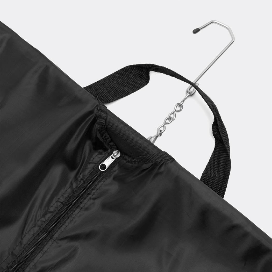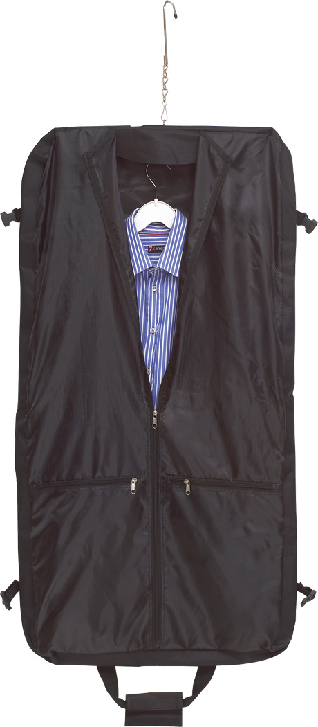 Kleidersack SMOKING: stabiler Metall-Aufhängehaken mit extra Klettverschlussfach, 2 Tragegriffe mit Klettverschluss-Verstärkung, 2 seitliche Kompressionsverschlüsse, 2 Reißverschluss-Vortaschen, innen 1 Reißverschluss-Fach und 2 kleine Reißverschluss-Fächer, verstell- und abnehmbarer Gurt mit Schulterpolster