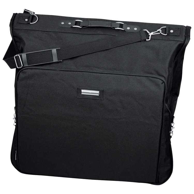 Großer Kleidersack aus 600D Polyester mit vielen Fächern, Kleiderhaken und Schultergurt. Ihre Werbung lasern wir auf das Metallemblem.