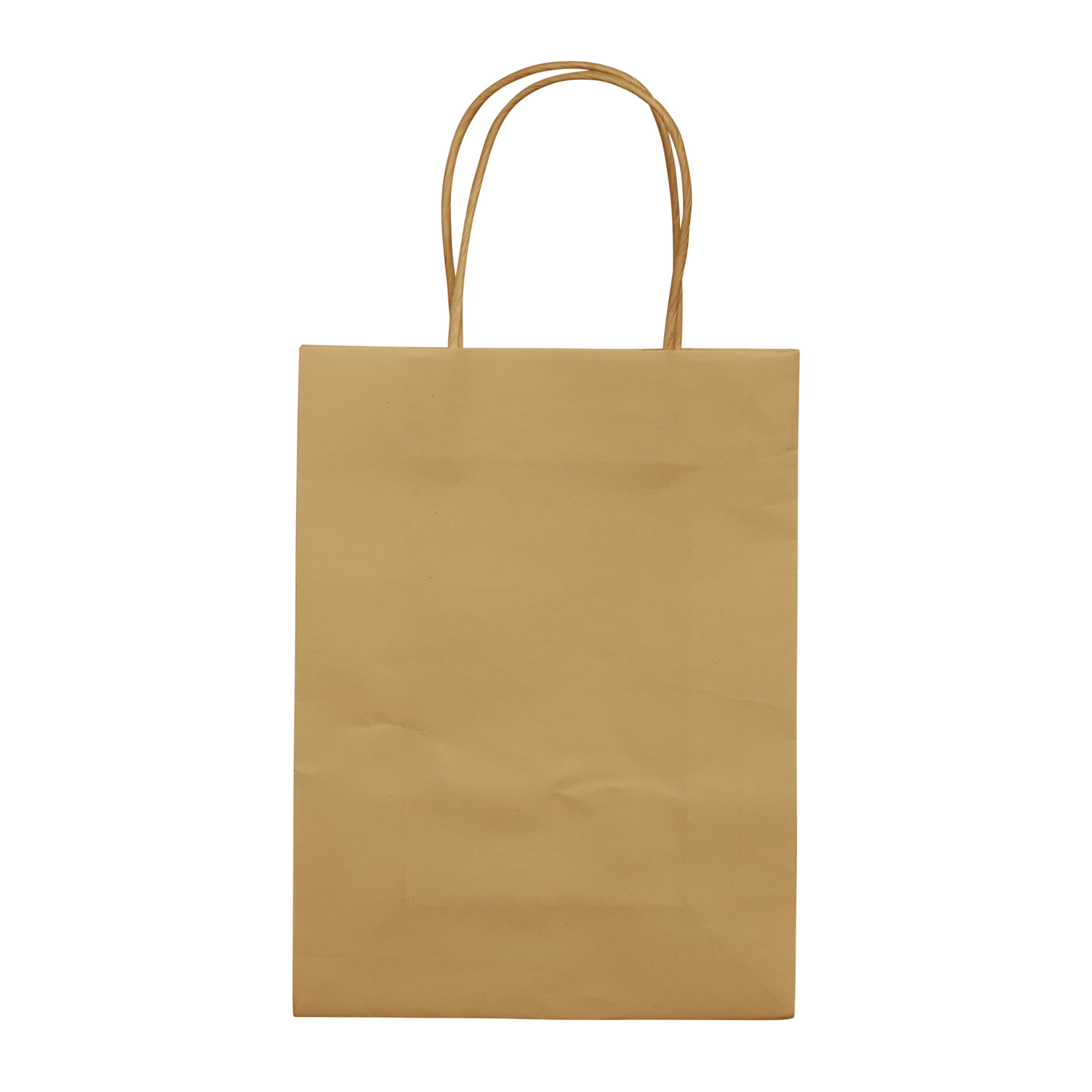 Kleinformatige, matte Papiertragetasche mit Griffen, die aus gedrehtem Papier gefertigt sind. Die Tasche hat einen ökologischen Look. Geeignet als Geschenktasche oder als Tasche für Mitbringsel. FSC-zertifiziert.