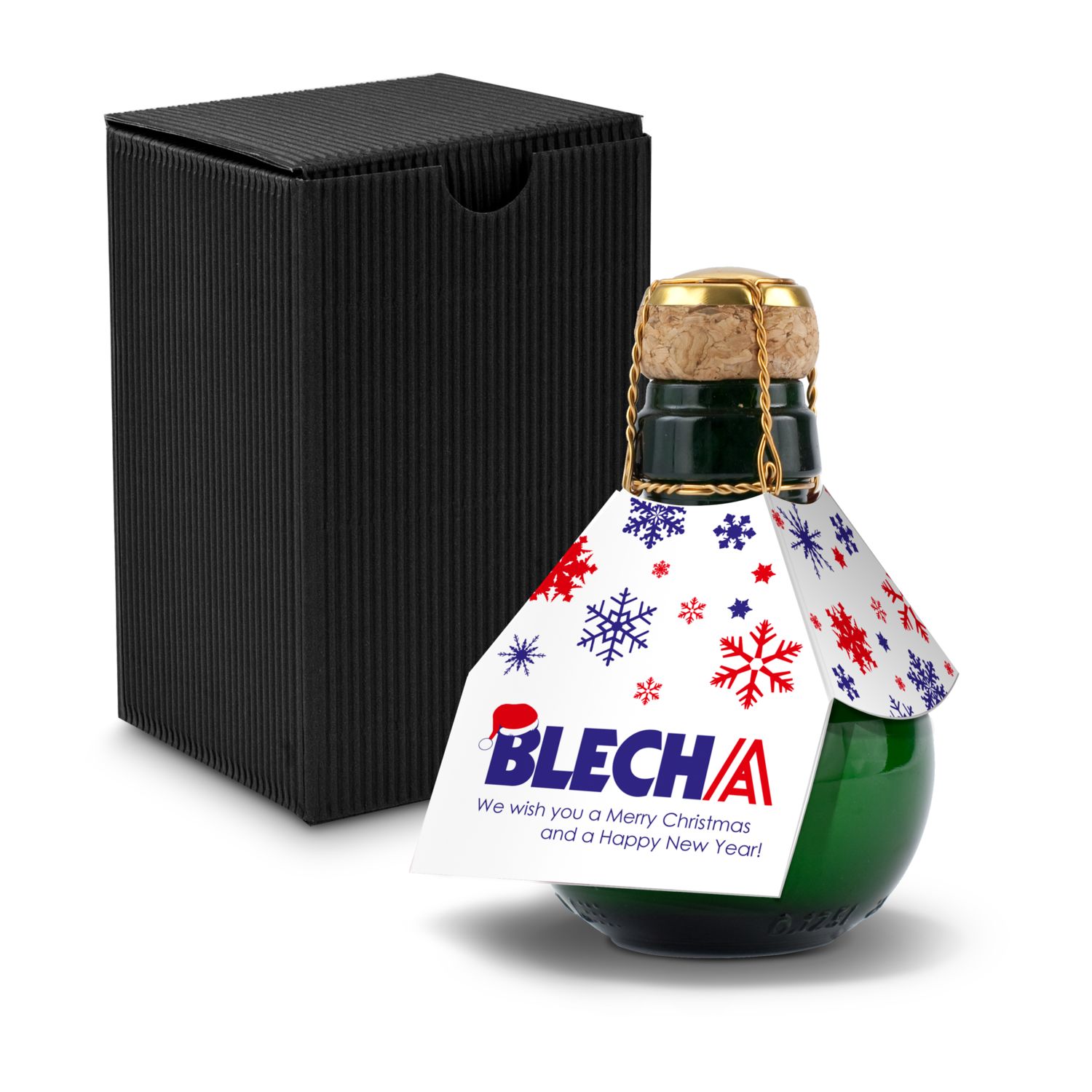 Eine Kleinere gibt es nicht: 0,125 l hochwertiger Sekt brut in origineller Flasche mit Naturkork und Agraffe, Alkohol 12% Vol., inklusive 0,17 € Schaumweinsteuer in Deutschland! Präsentiert in origineller Schmuckwelle - in 4 Farben erhältlich. In verschiedenen Standarddesigns ab 1 Stück oder in individuellem Design ab 120 Stück erhältlich. Auf Wunsch auch ohne Schmuckwelle erhältlich.
