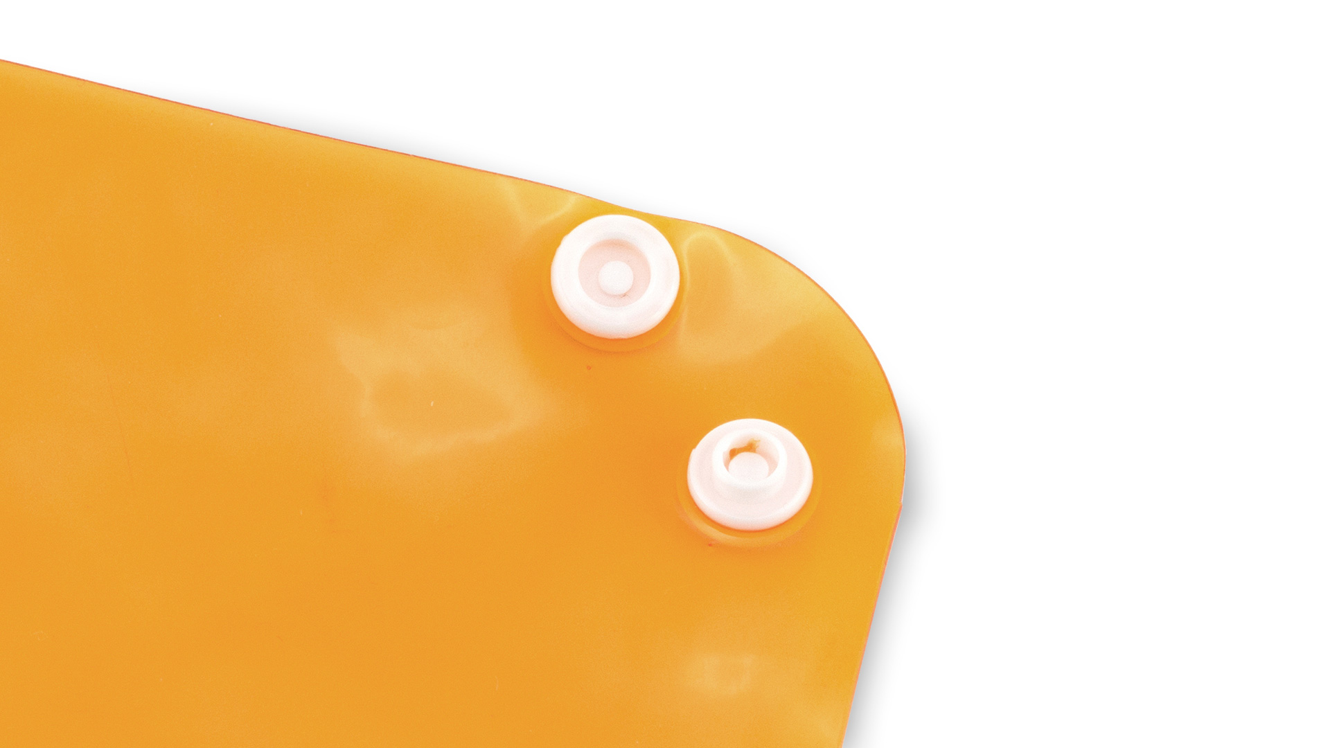 Originelle Ablageschale aus robustem PVC in verschiedenen transparenten Farben. Mit Knopfverschlüssen an den Ecken.