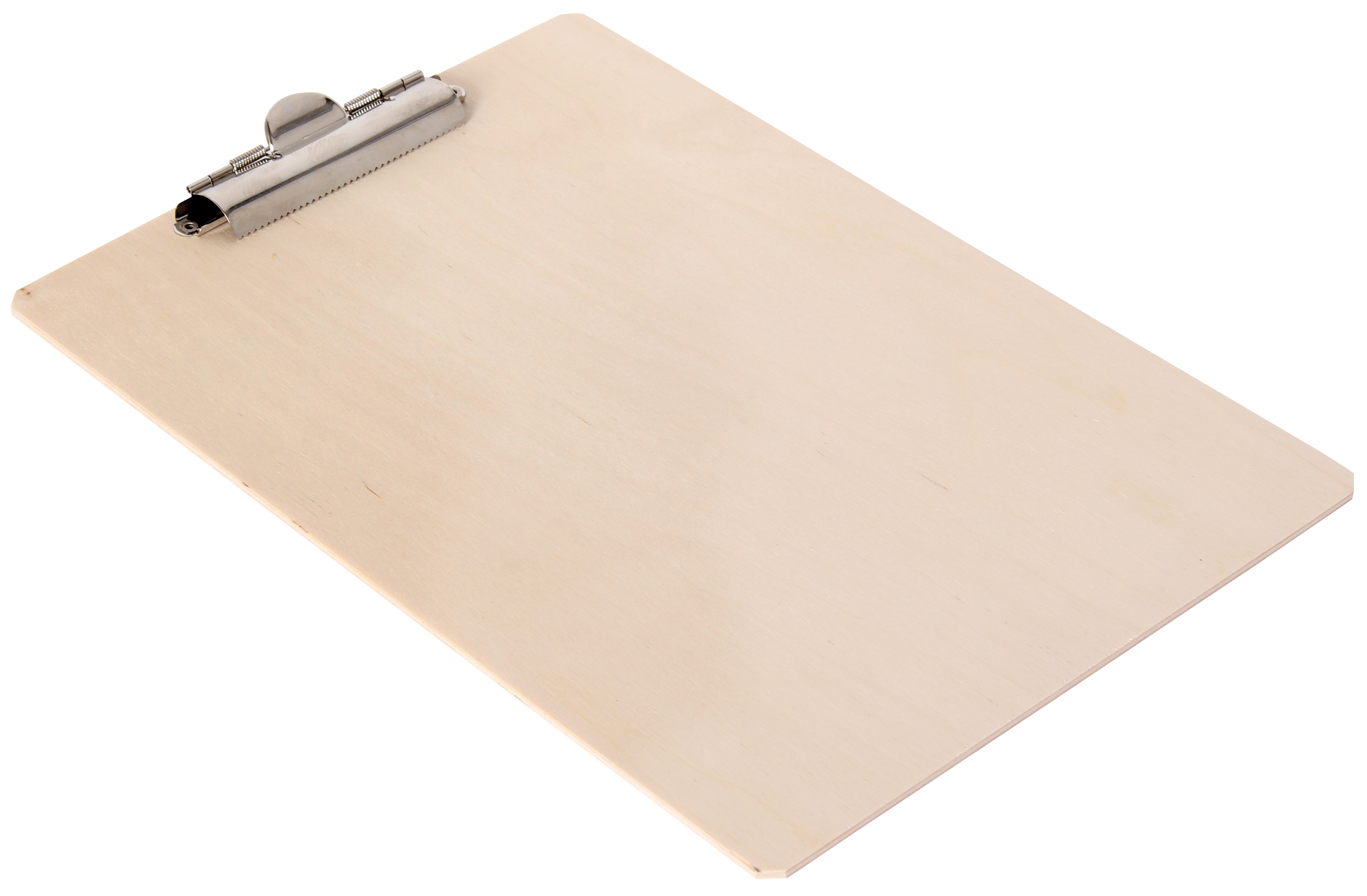 Preiswerte und praktische Schreibunterlage aus Pappel-Sperrholz mit Klemmvorrichtung für Papierformate bis DIN A 4.
