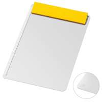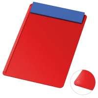 Klemmbrett aus Kunststoff, ca. DIN A4-Format, mit Metall-Klammer.