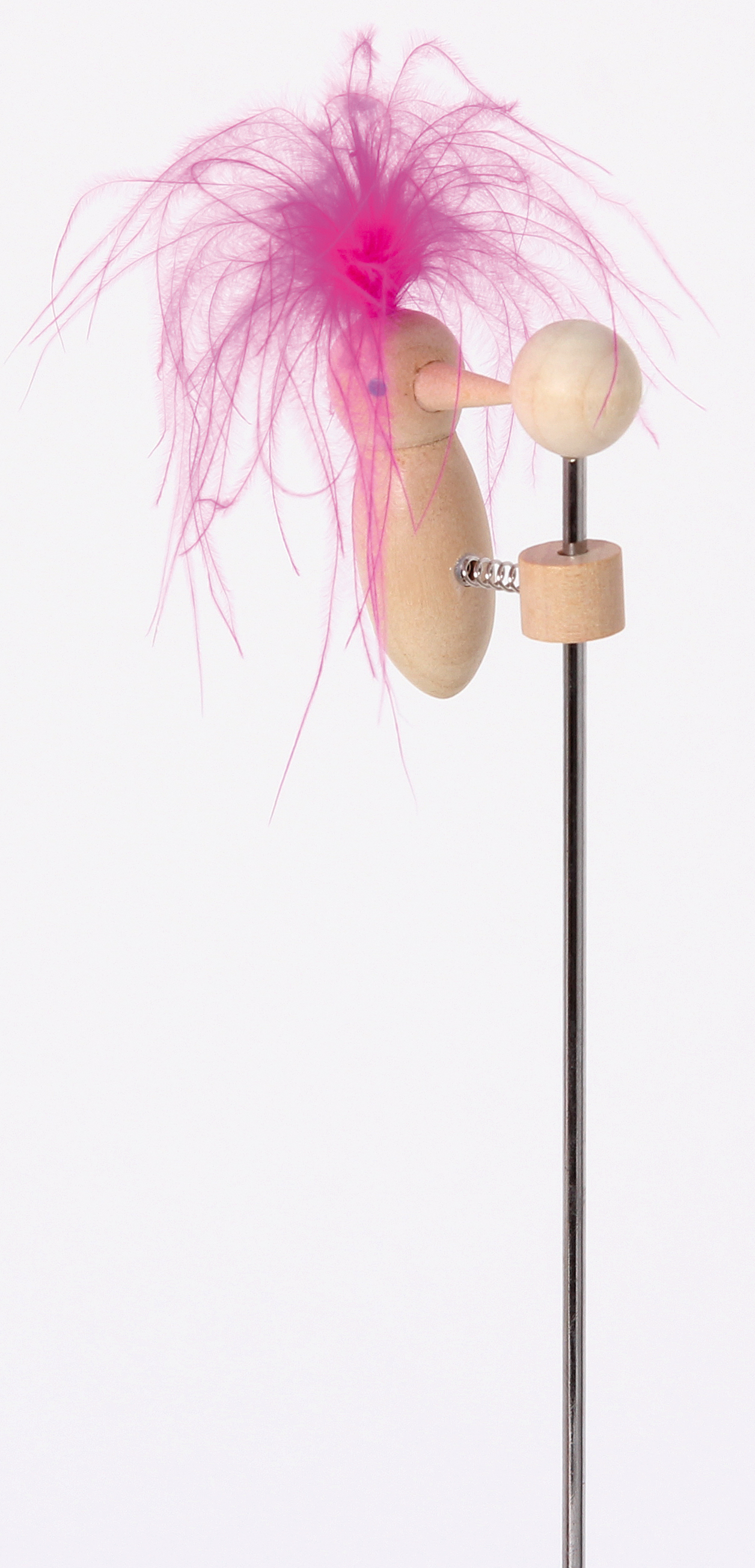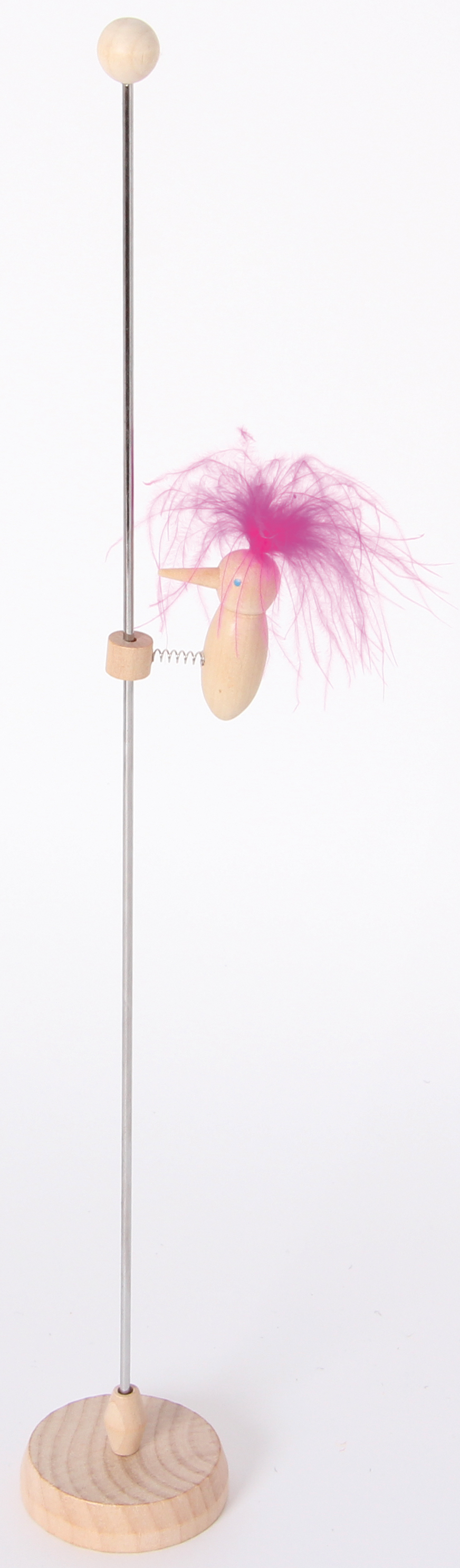 Wird der kleine Holzspecht am oberen Stangenende in Bewegung gesetzt klopft er flink die Stange hinunter.