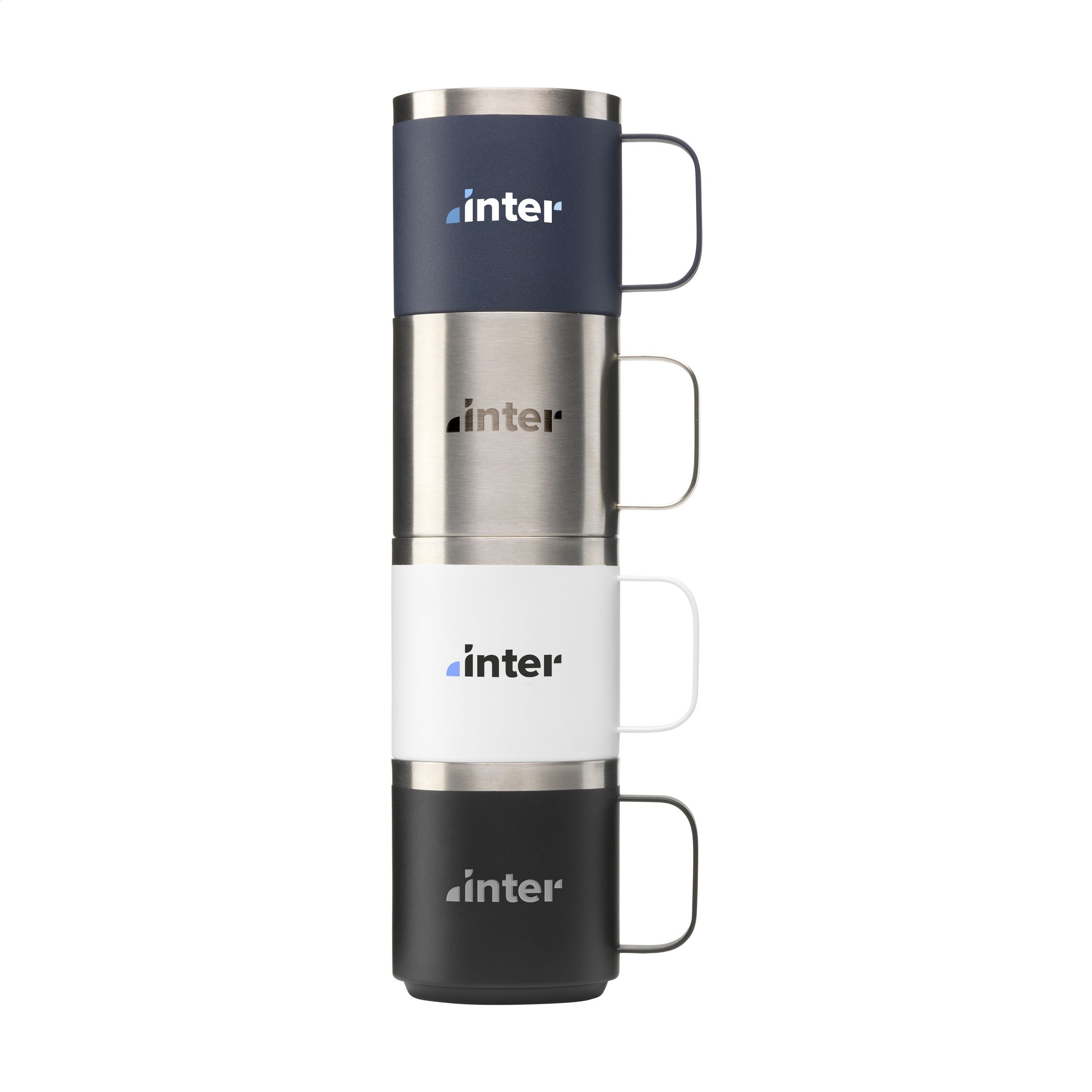 WoW! Doppelwandiger, stapelbarer Becher. Die Innen- und Außenwände sind aus recyceltem Edelstahl gefertigt. Dadurch bleiben heiße Getränke länger auf Temperatur. Mit einer attraktiven Pulverbeschichtung versehen. RCS-zertifiziert. Gesamtes recyceltes Material: 79%. Fassungsvermögen 500 ml. Edelstahl kann viele Male recycelt werden – die Qualität des Materials bleibt dabei weitgehend erhalten. Durch die Verwendung von recyceltem Edelstahl kommt eine geringere Menge an neuen Rohstoffen zum Einsatz. Das bedeutet weniger Energieverbrauch und weniger Wasserverbrauch. Wird einzeln in einem Kraftkarton geliefert.
